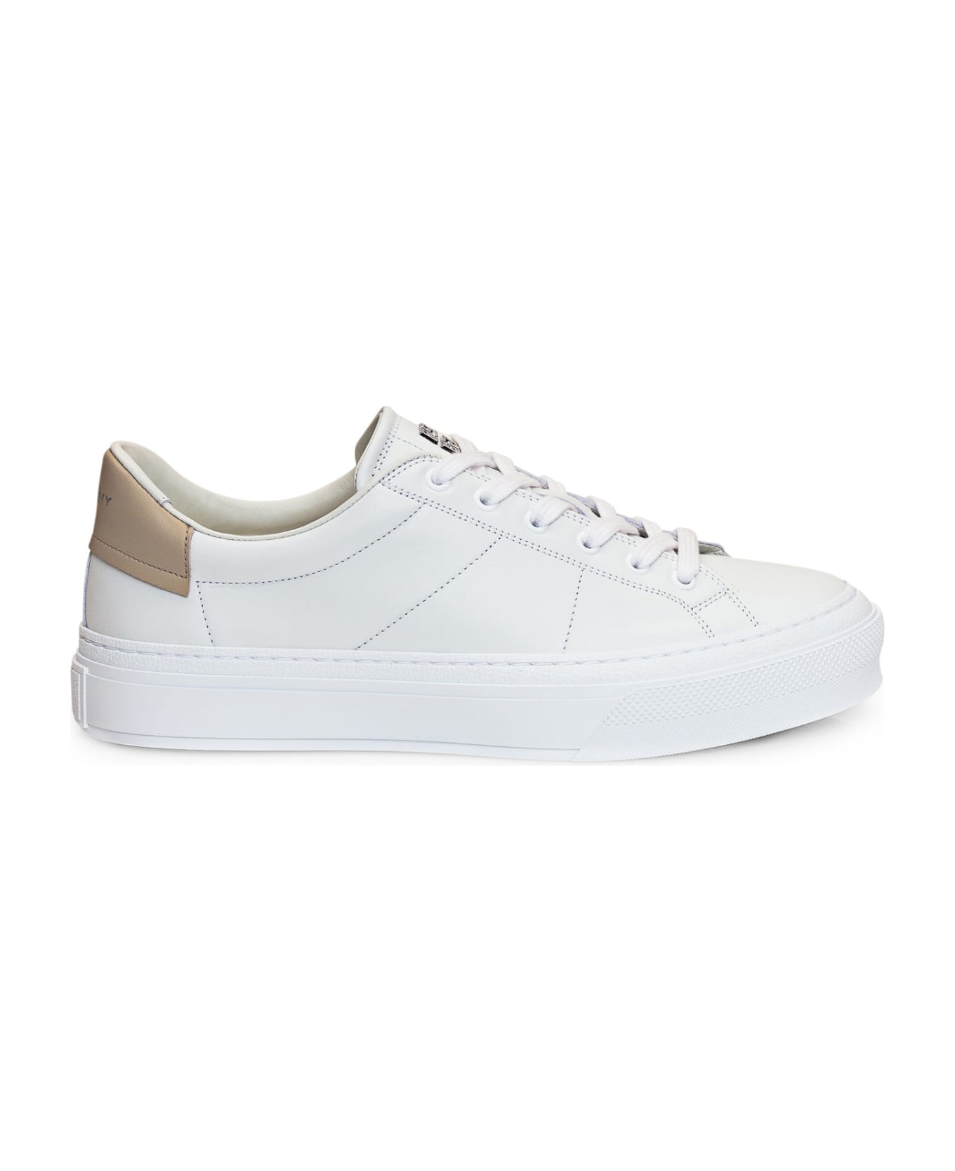 Low white sneaker. Lace-up closure. Contrasting heel with logo. 4G on the tongue.