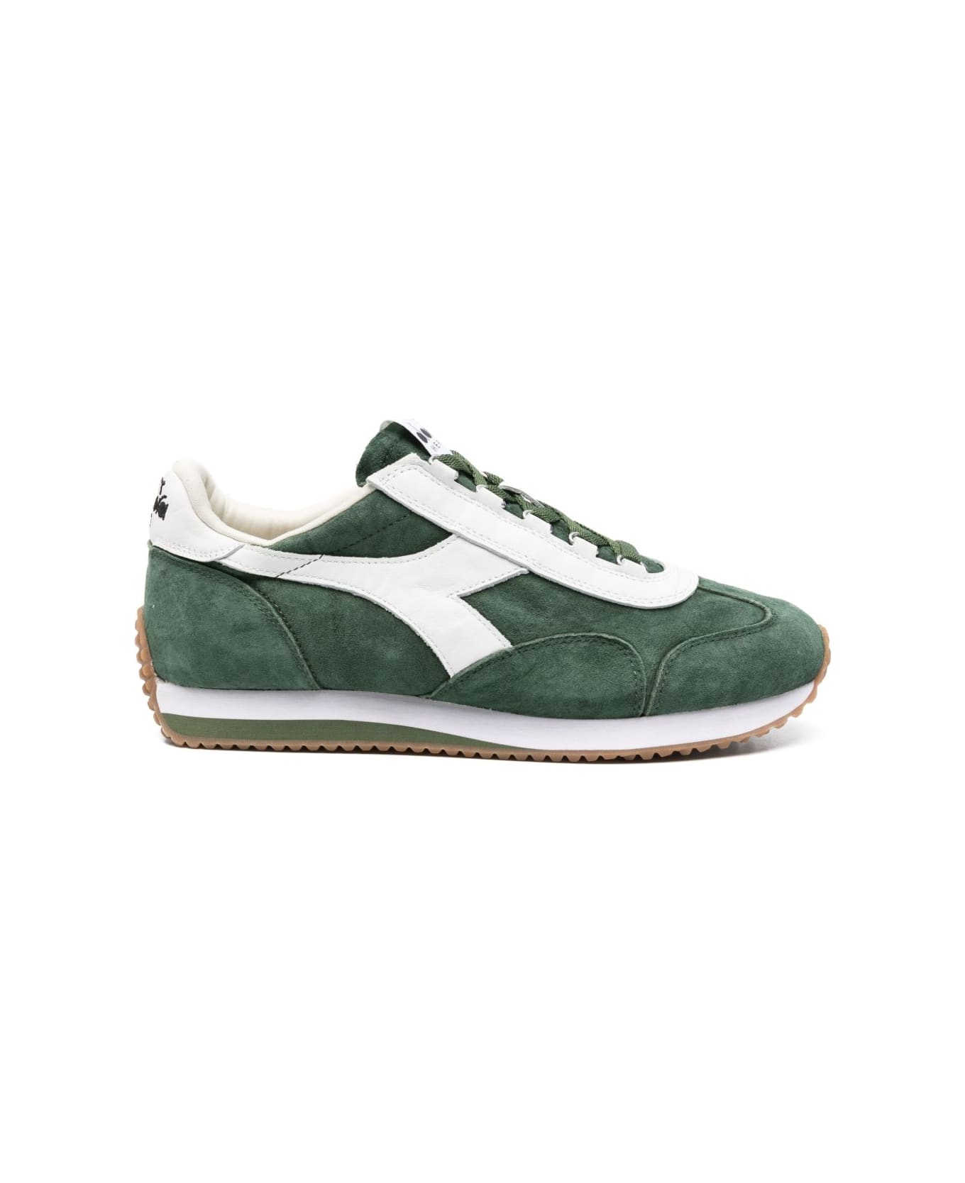 green suede upper contrasting leather panel lace-up fastening gum sole tonal stitching