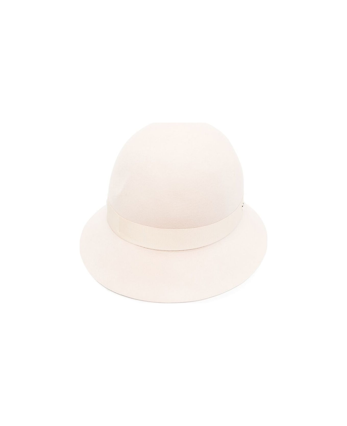 ecru wool felt stretch-design grosgrain ribbon trim round crown dropped narrow brim