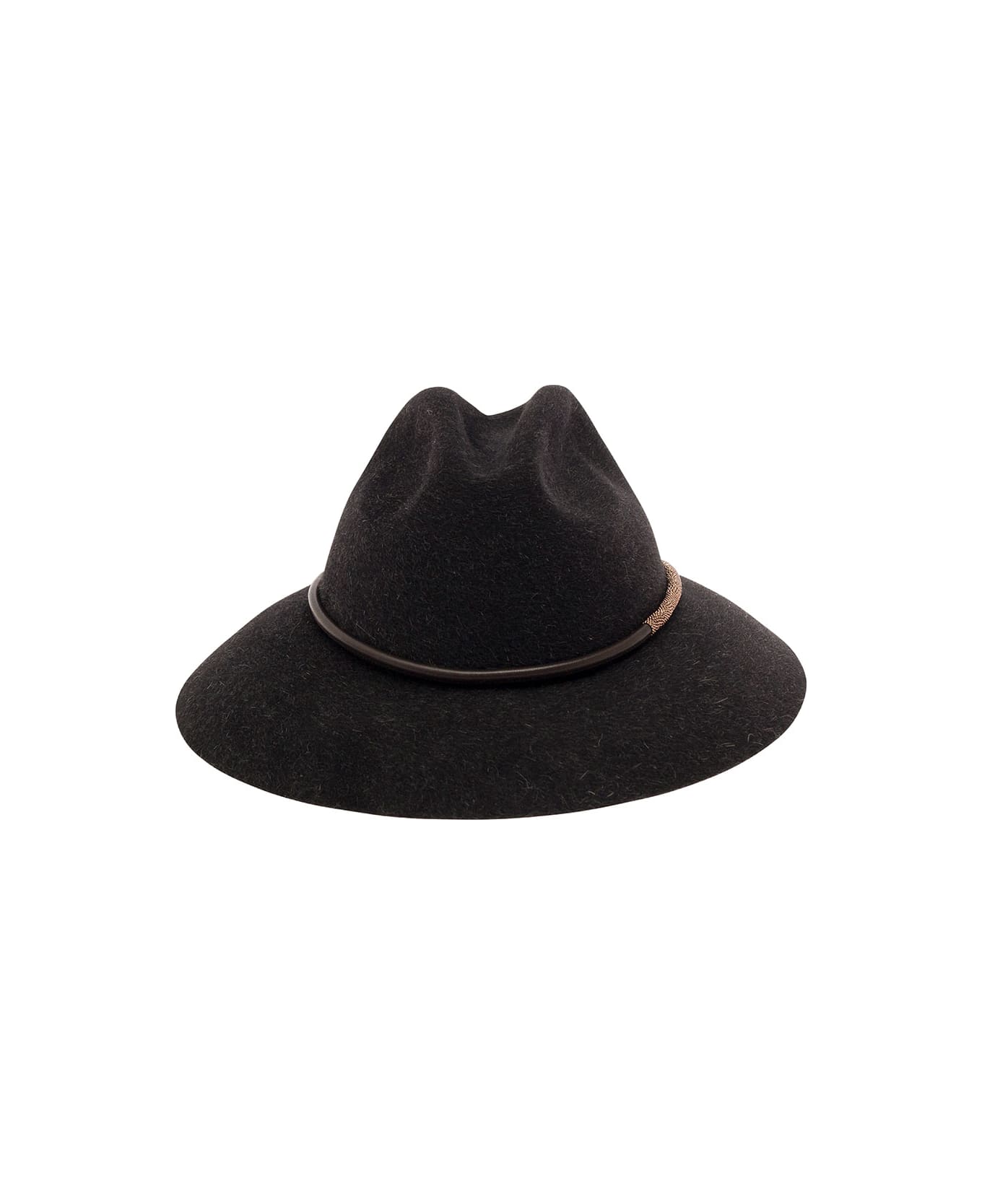 Fedora hat Large brim Monile detail Brown Felt