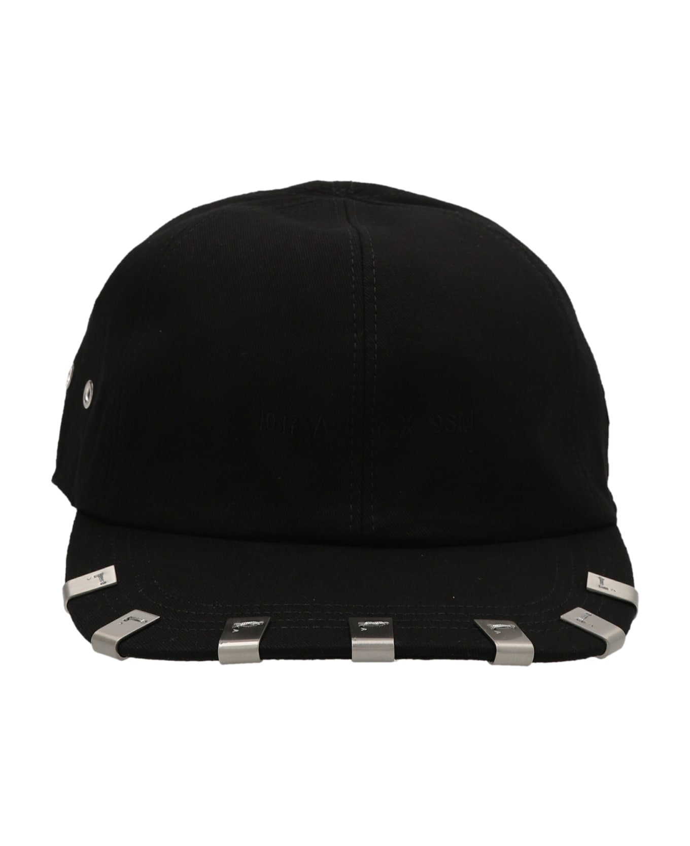 Cotton cap with metal inserts on the visor.