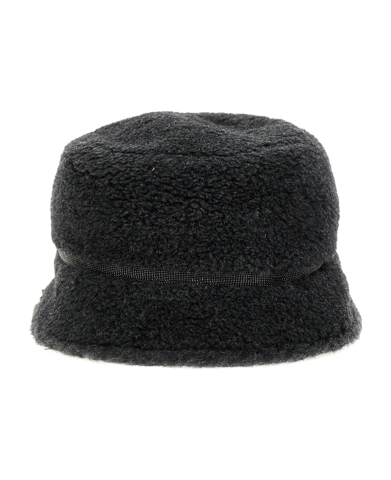 Bucket hat in teddy fabric with Monile detail.