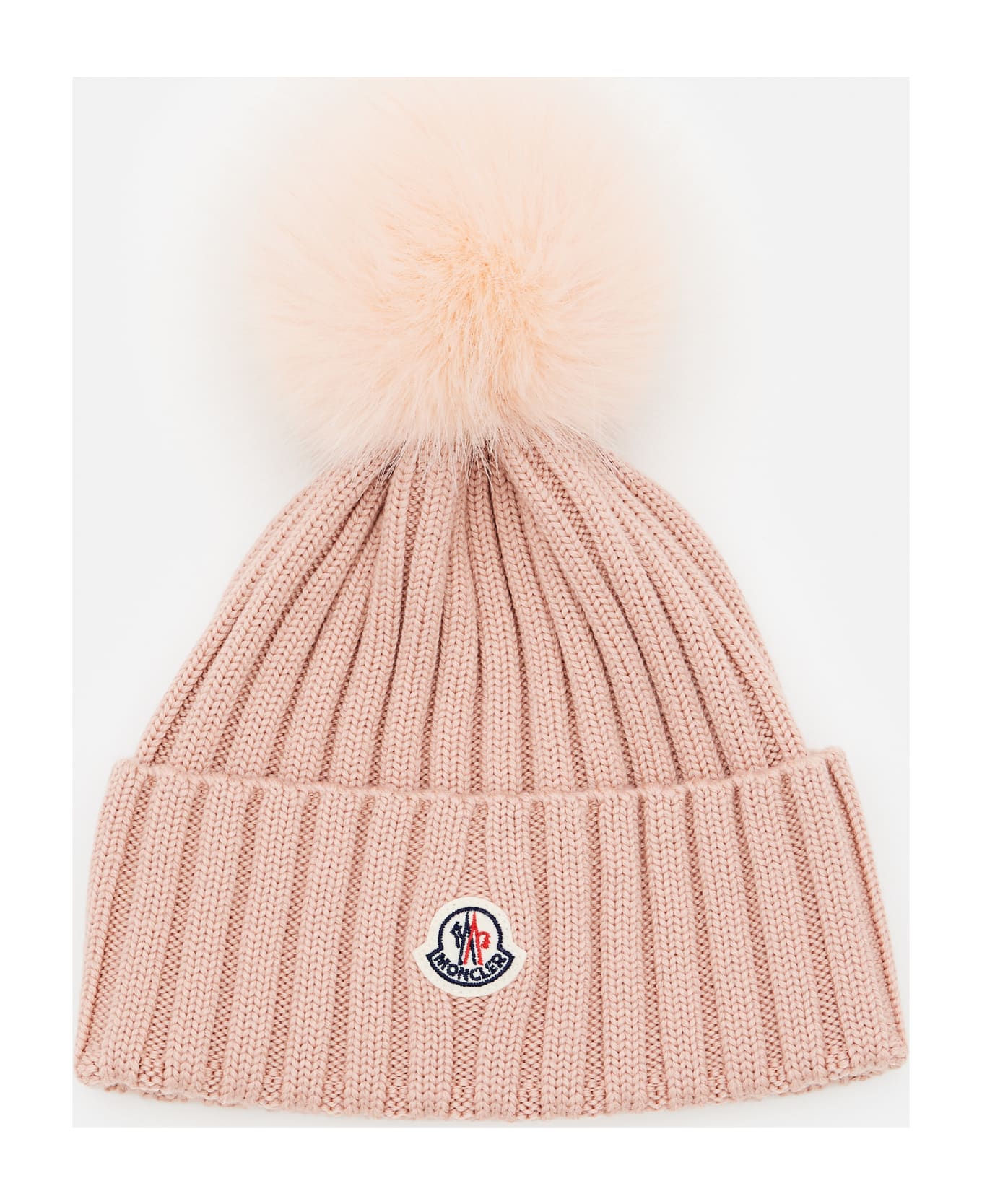 Ultra-fine Merinos wool. Synthetic material pom pom. Ribbed knit. Color: beige.