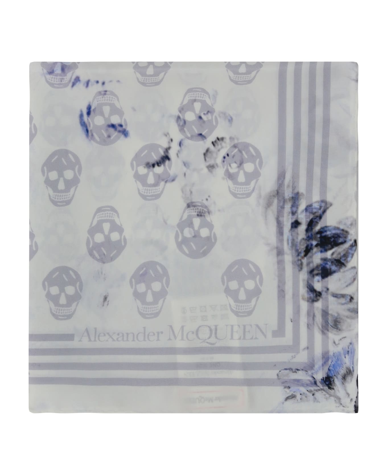 Silk biker scarf by alexander mcqueen, iconic all-over contrasting printed skull logo, floral print design, iconic brand signature on sides. Composition: 100% % Silk