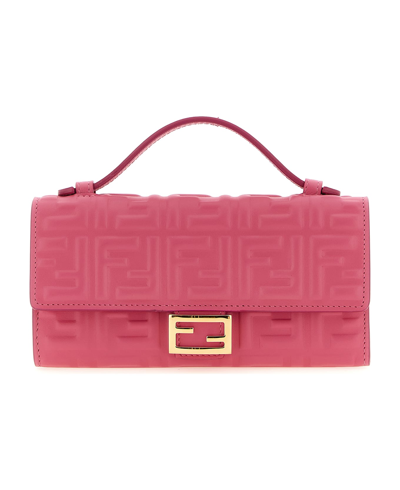 'Continental Baguette' nappa wallet on chain with iconic embossed FF pattern with a three-dimensional effect, fixed top handle, flap closure with snap button and metal 'Baguette' logo on the front, removable chain shoulder strap.