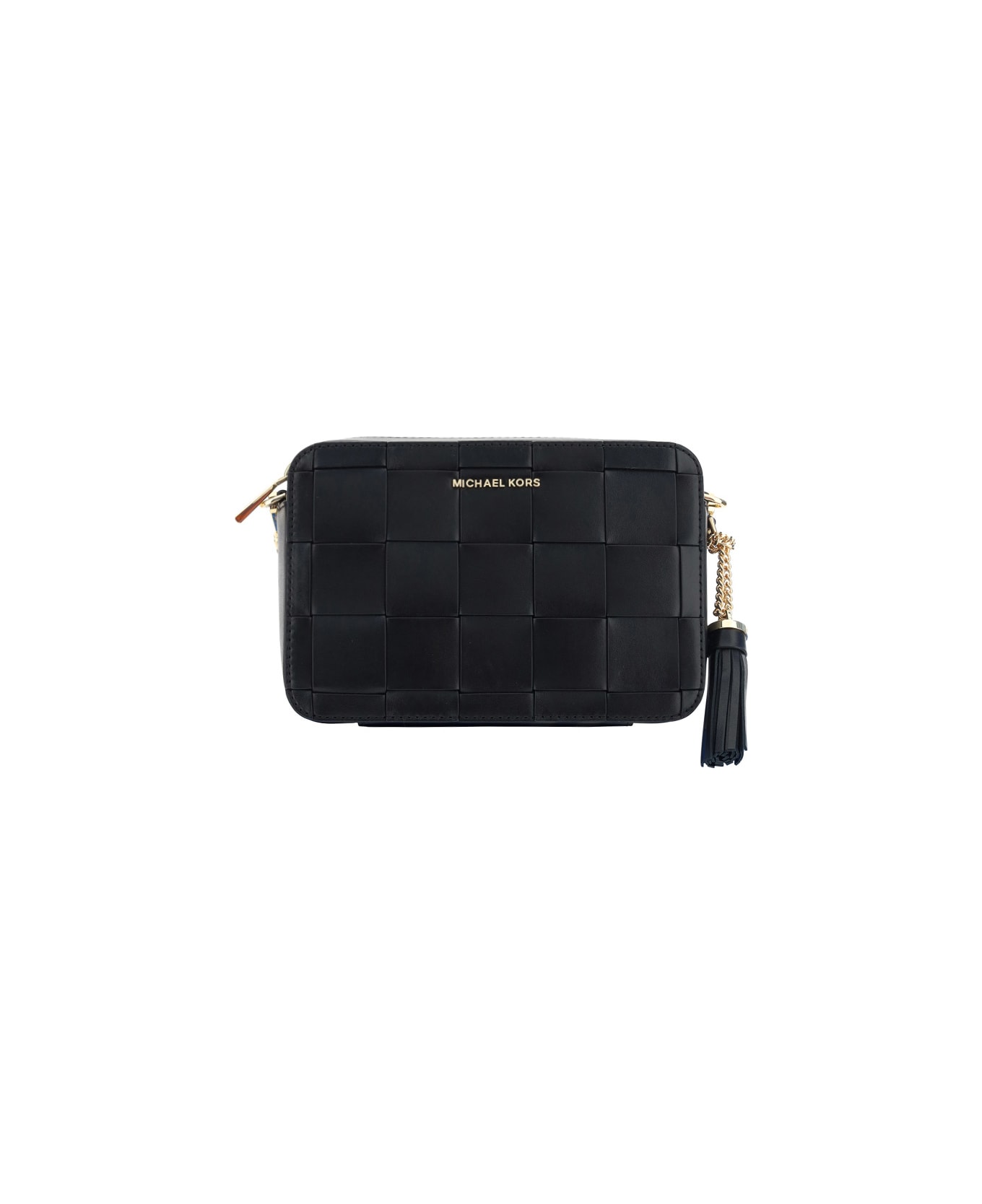 Calfskin ginny shoulder bag by michael kors, top zipper closure, leather tassel detail slider, removable and adjustable flat leather shoulder strap with chain detail, embossed iconic brand monogram plaque at front, garnet effect design, contrasting iconic brand monogram at front, tone-on-tone stitching and trim.