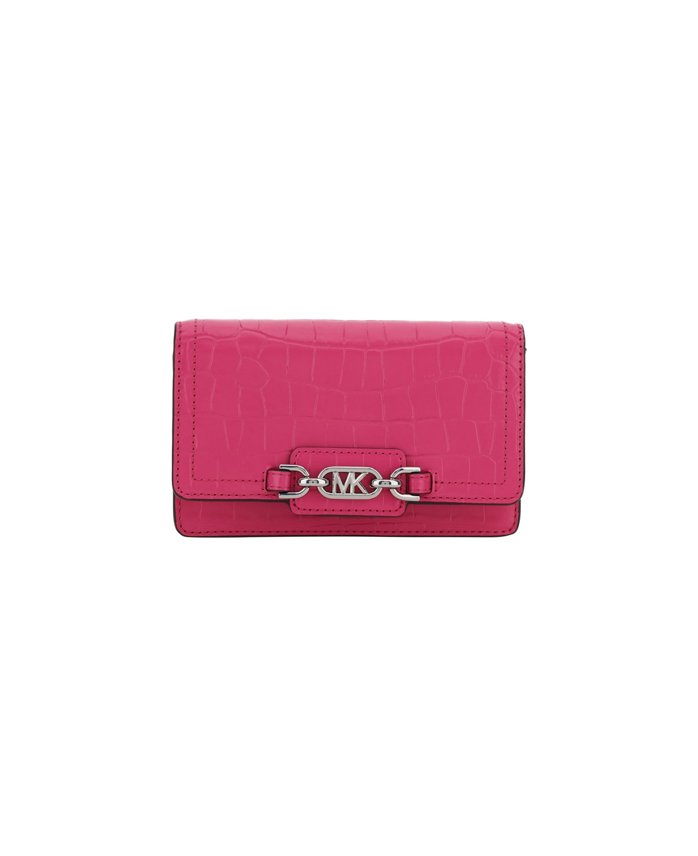 Calfskin heather shoulder bag by michael kors, shoulder strap with sliding chain and leather detail, plaque with iconic brand monogram embossed on the front, crocodile-effect leather design, front opening with magnetic button, double interior compartment.