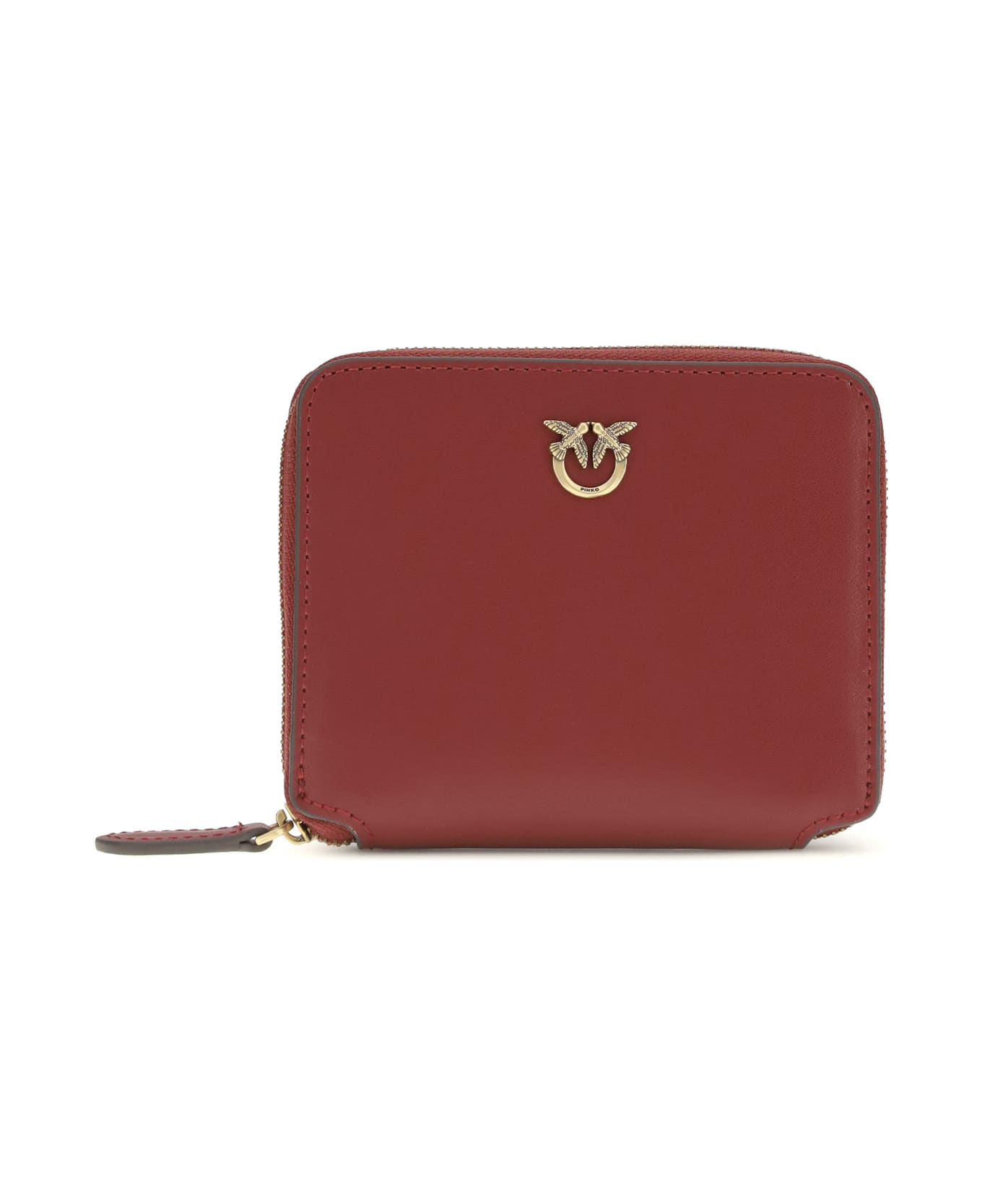 The leather zip-around wallet by pinko is a compact and refined accessory made of soft leather and featuring the love birds diamond cut plaque on a leather base. the zipper closure provides security, while the polycotton-lined interior offers practicality and organization.