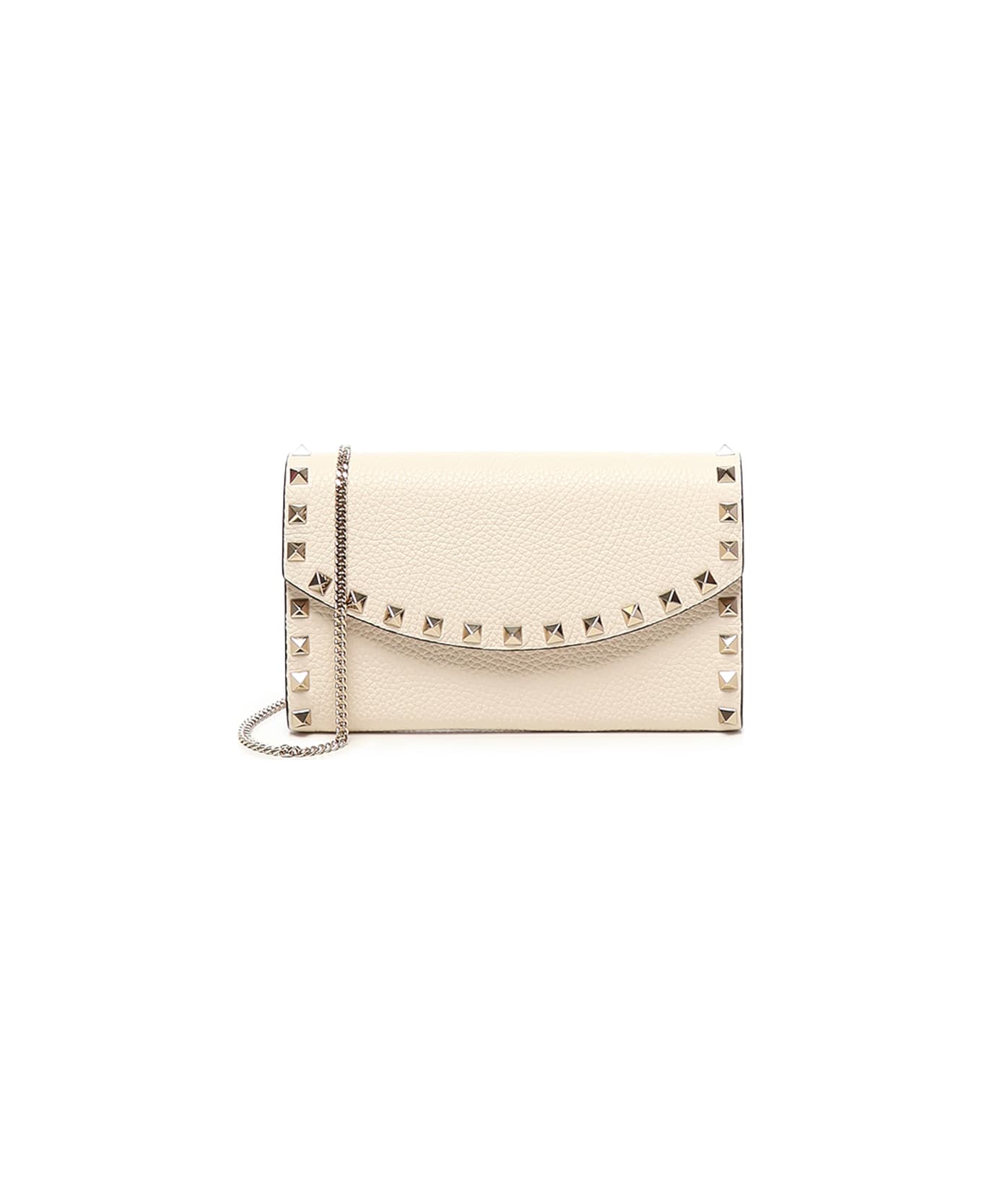 - Made of calfskin - Chain shoulder strap - Magnetic closure - Card slots, interior slip pocket - Made in Italy - Dimensions: 19 x 11 x 3. 5 cm - Designer color: Light Ivory