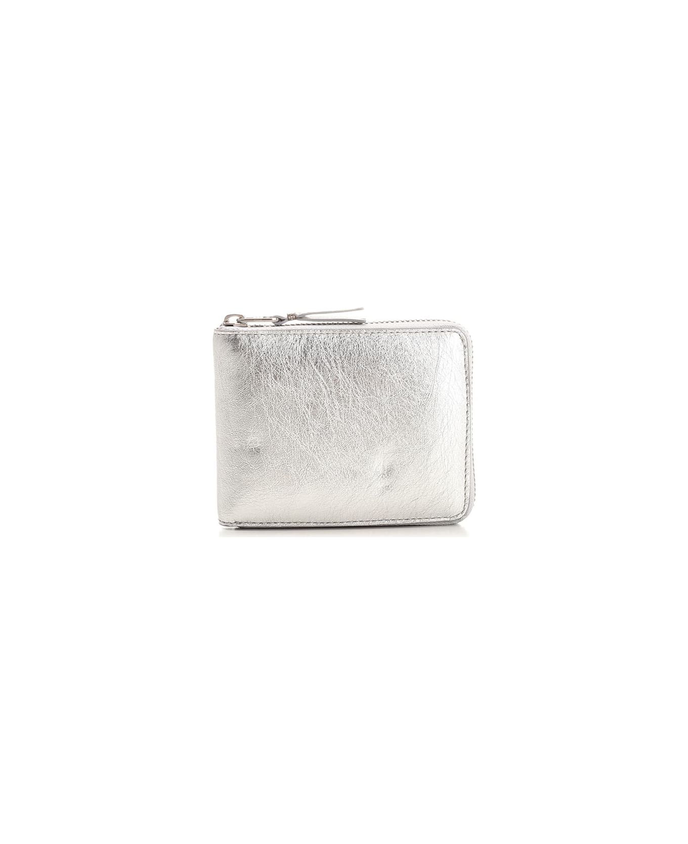 Silver embossed leather small wallet with all-over zip closure and interior with card slots and coin pocket by Comme Des Garcons Wallet