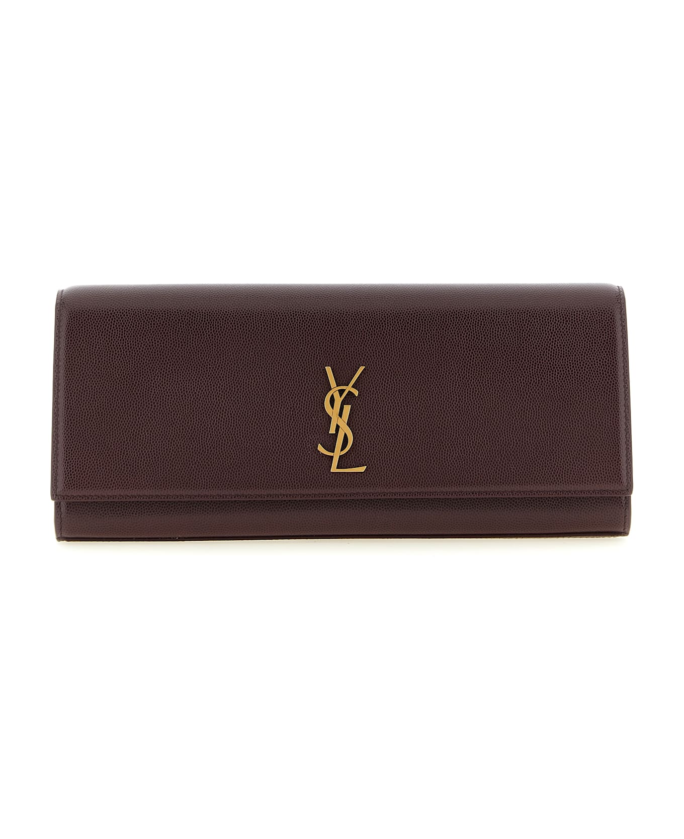 'Kate' grain de poudre leather clutch, magnetic flap closure with antiqued metal 'Cassandre' detail on the front, removable chain shoulder strap.