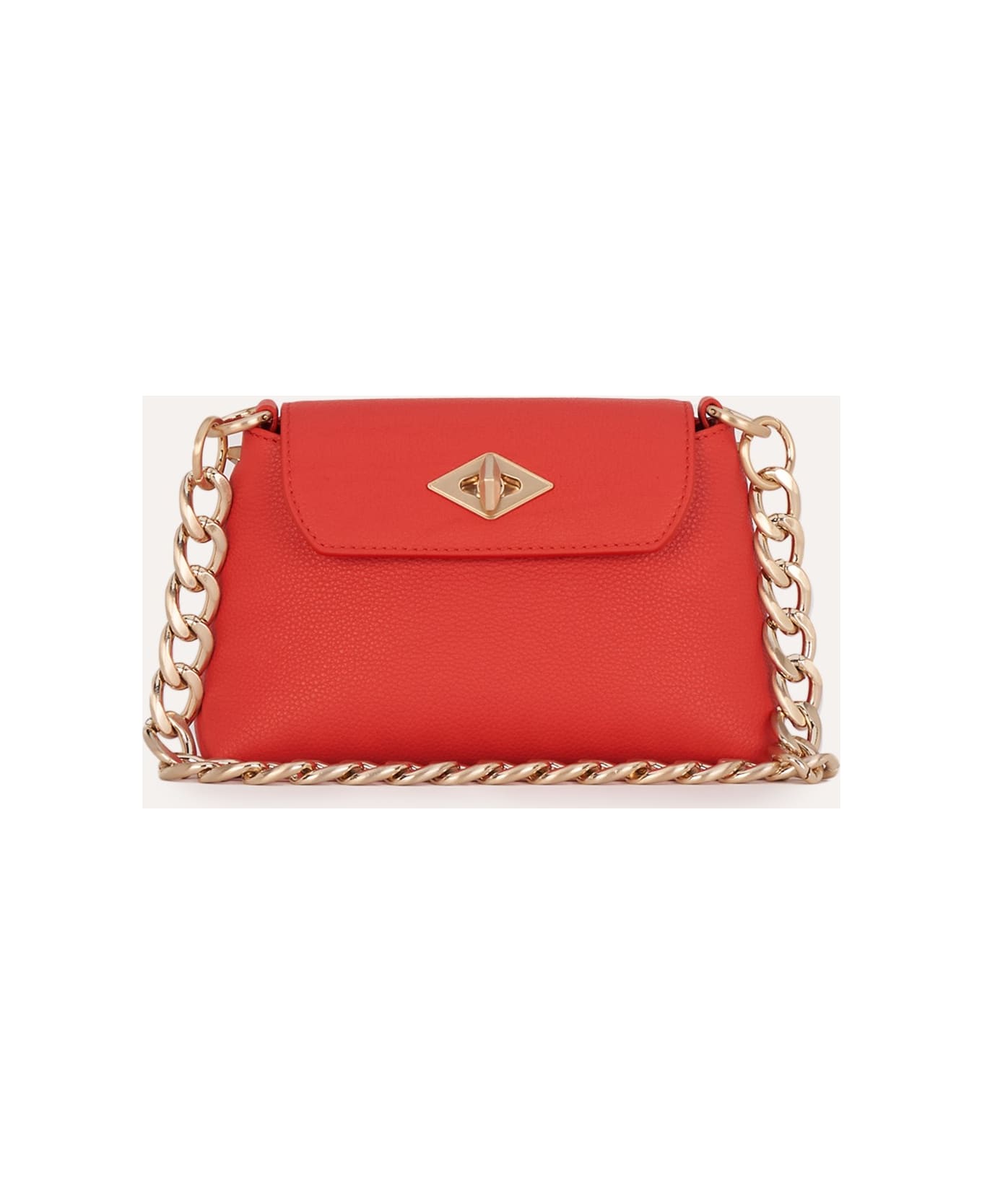 The Diamond Bag micro is made of small grain calf leather. The iconic model is embellished with satin gold details that recall the shape of classic diamond. The interior is made of suede-effect fabric. The bag has 2 removable shoulder straps, one leather and one chain. Protective dust bag included. Composition: COLOR: BRIGHT RED
