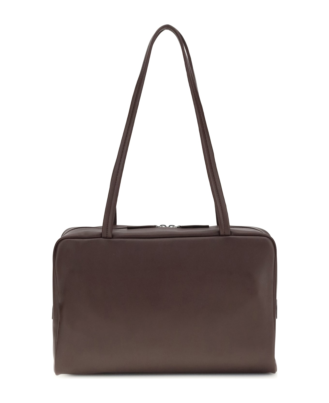 The astra bowling leather shoulder bag by the row reflects the brand's essential sophistication with a clean, functional design. crafted from smooth leather, it features a zip-around closure at the top and two short handles for elegant carry by hand or on the arm. the discreet detail of the iconic press-on monogram on the side panel adds a distinctive touch. a single compartment interior completes the model, designed for those who love understated, impeccable style.