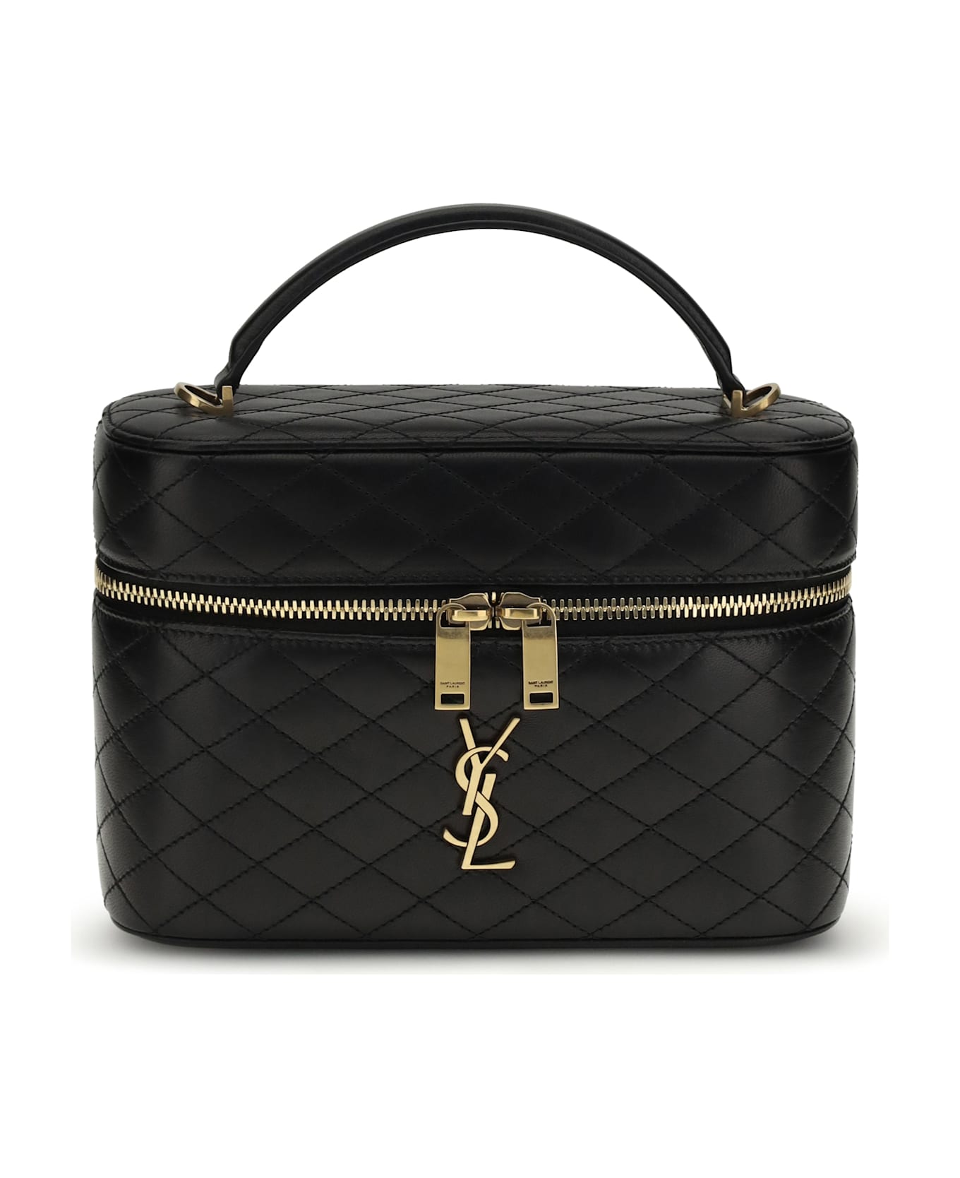The gaby large vanity handbag by saint laurent is an elegant and distinctive accessory, crafted from quilted leather and embellished with the iconic monogram metal detail on the front. featuring a flat leather handle and an adjustable and removable shoulder strap, it offers versatility of use. the zip closure ensures security and practicality, making this bag perfect for those looking for style and functionality in a single accessory.