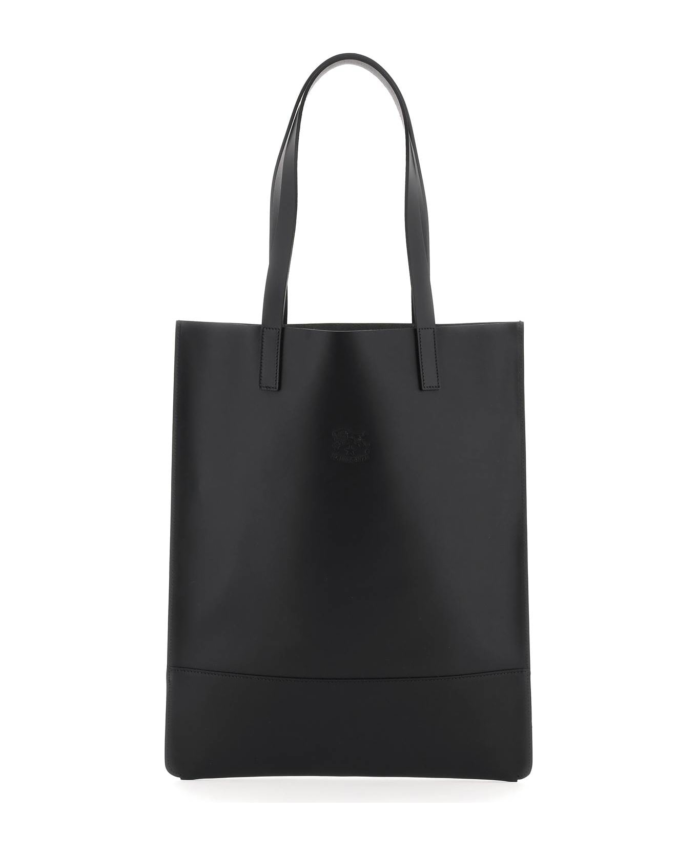 Leather tote bag by Il Bisonte with engraved logo on front. Double handle and unlined interior.