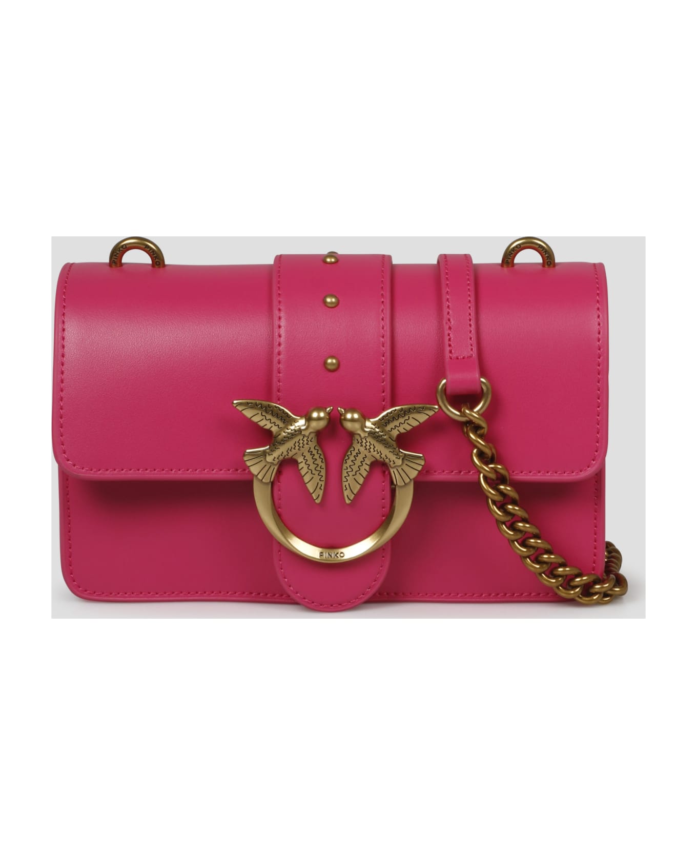 Pinko Mini Love Bag Icon in silky-feel leather embellished with the iconic metal Love Birds Diamond Cut buckle. - W: 21cm H: 13cm D: 6cm