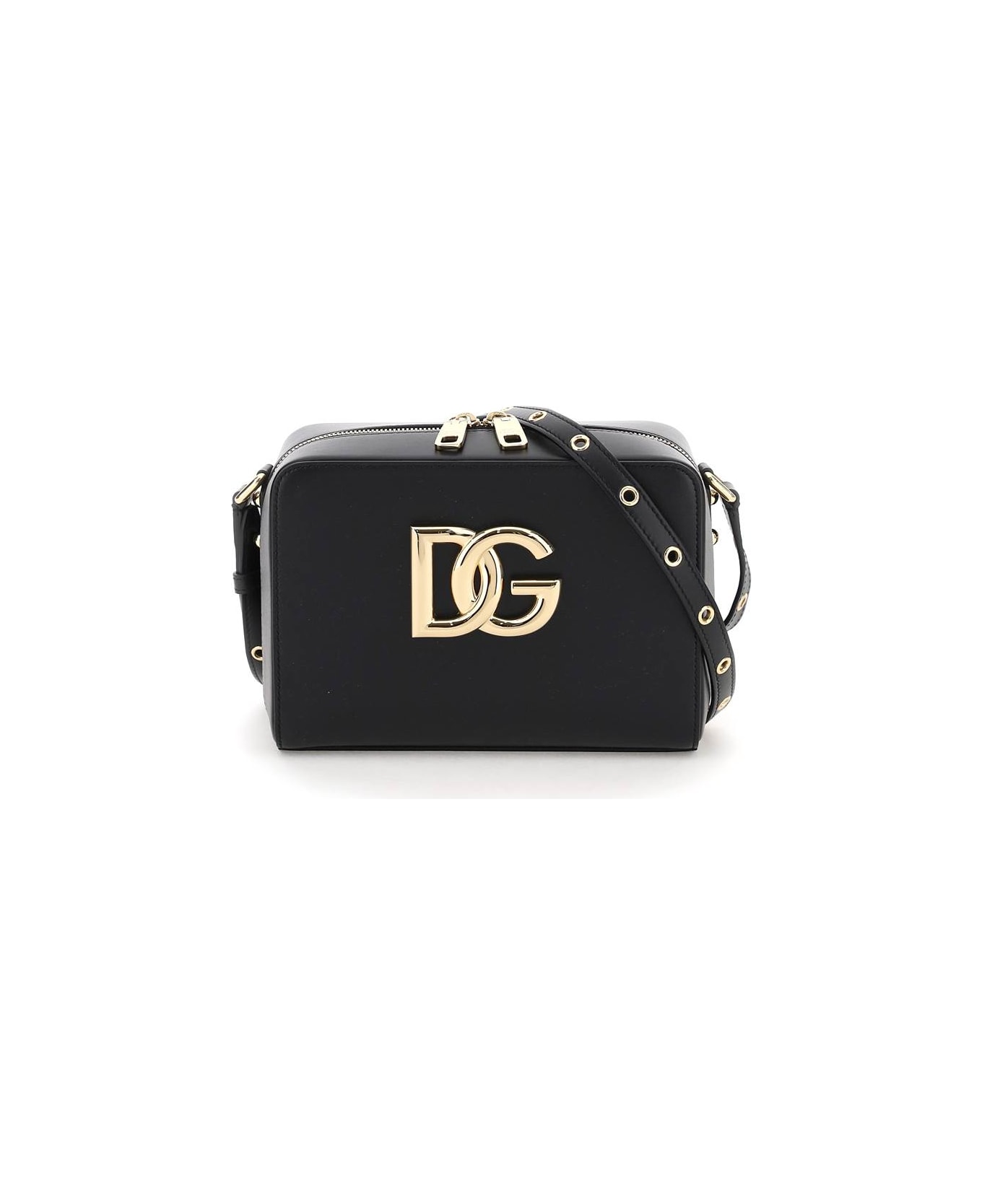 Medium 3. 5 crossbody bag by Dolce & Gabbana craftedin smooth calf leather with metal DG logo applied on front. Adjustable shoulder strap with full-length metal eyelets, rear flat patch pocket and three-side zip closure. Leather-lined interior with gusseted sides, a zipped flat pocket, a patch pocket and a credit card pocket. Gold-finished metalware.