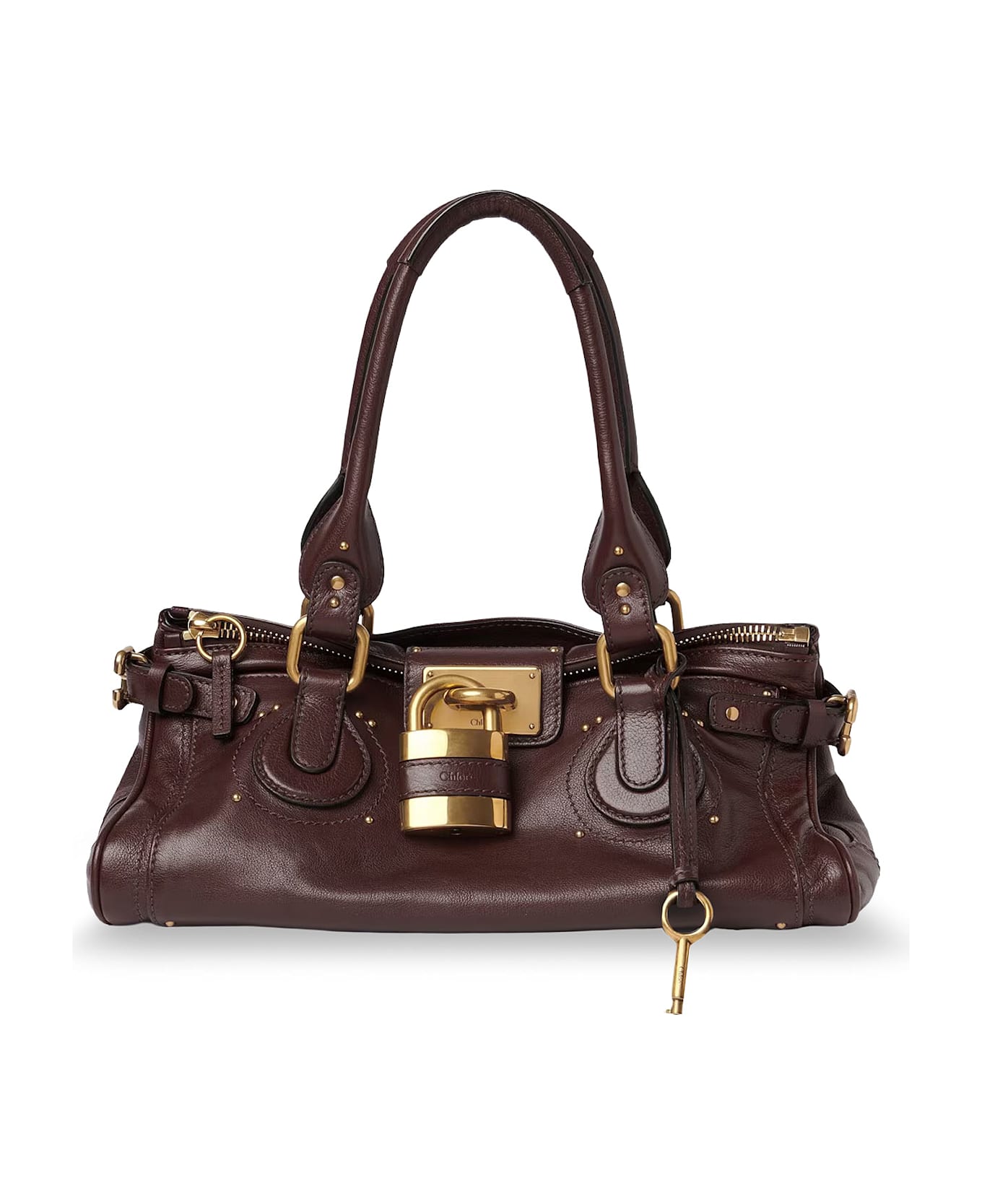 Zip closure and two tubular leather handles Iconic metal padlock with leather logo detail Two external flat pockets Made in Italy Leather Lining: Cotton W: 36 cm x H: 18 cm x D: 18 cm SKU:CH25WS802P7527M