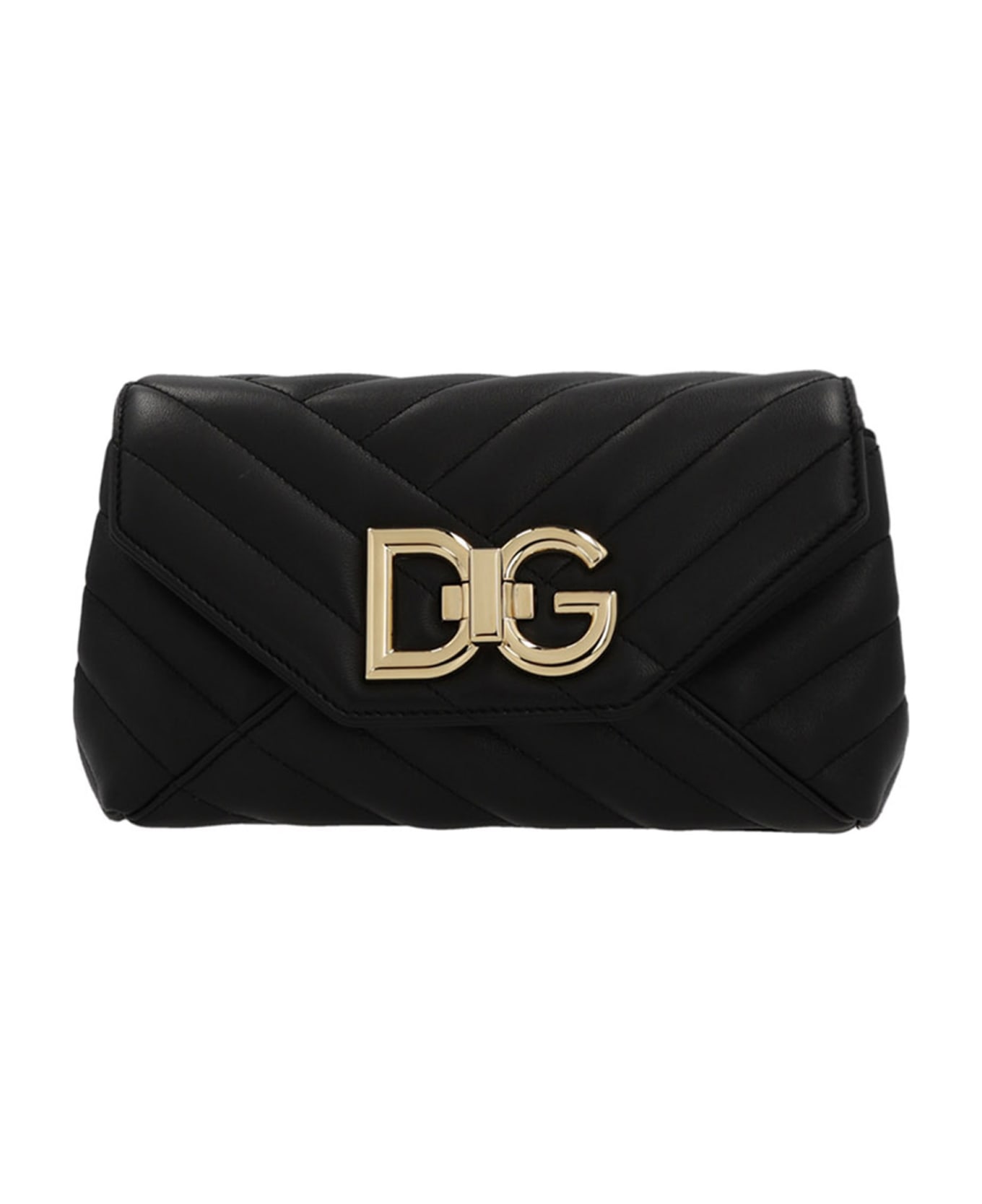 Quilted leather shoulder strap with front metal logo appliqué, turn closure, chain shoulder strap and removable leather. Composition: 100% lamb leather