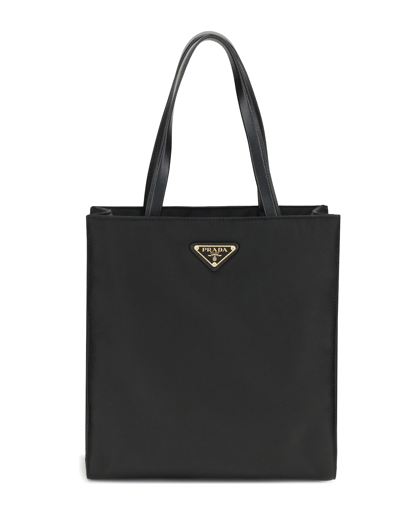 Re-nylon tote bag by prada features a functional and elegant design. equipped with two leather handles, it features the iconic triangular plaque on the front and an adjustable and removable nylon shoulder strap for added versatility.