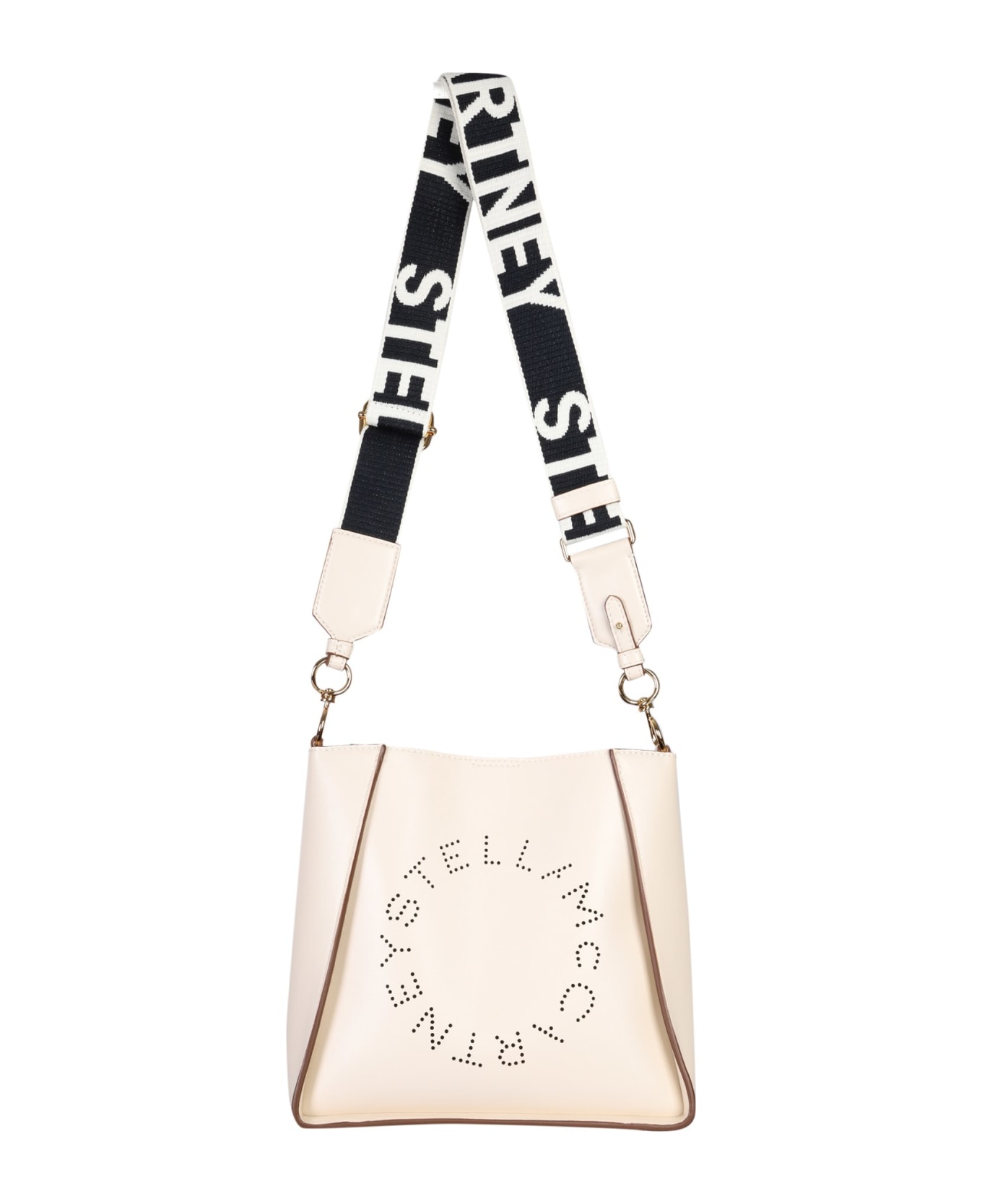 - Adjustable Webbing Shoulder Strap With Logo- Snap Button Closure- Front Perforated Logo- One Interior Flat Pocket- Lined Interior- Gold Finish Metal Accessories- Dimensions: H 23 Cm X W 23 Cm X D 8 Cm- 56% Polyurethane, 56% Polyamide- Made In Italy