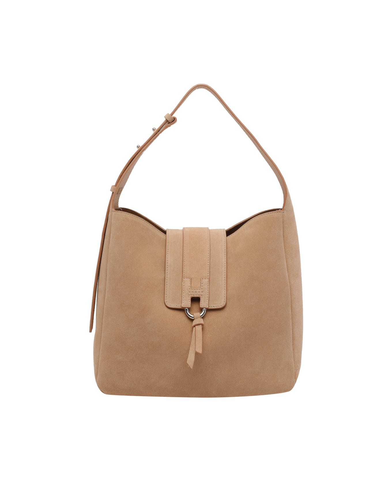 Hogan beige shoulder bag, magnetic closure, inner open pocket, adjustable handle, suede