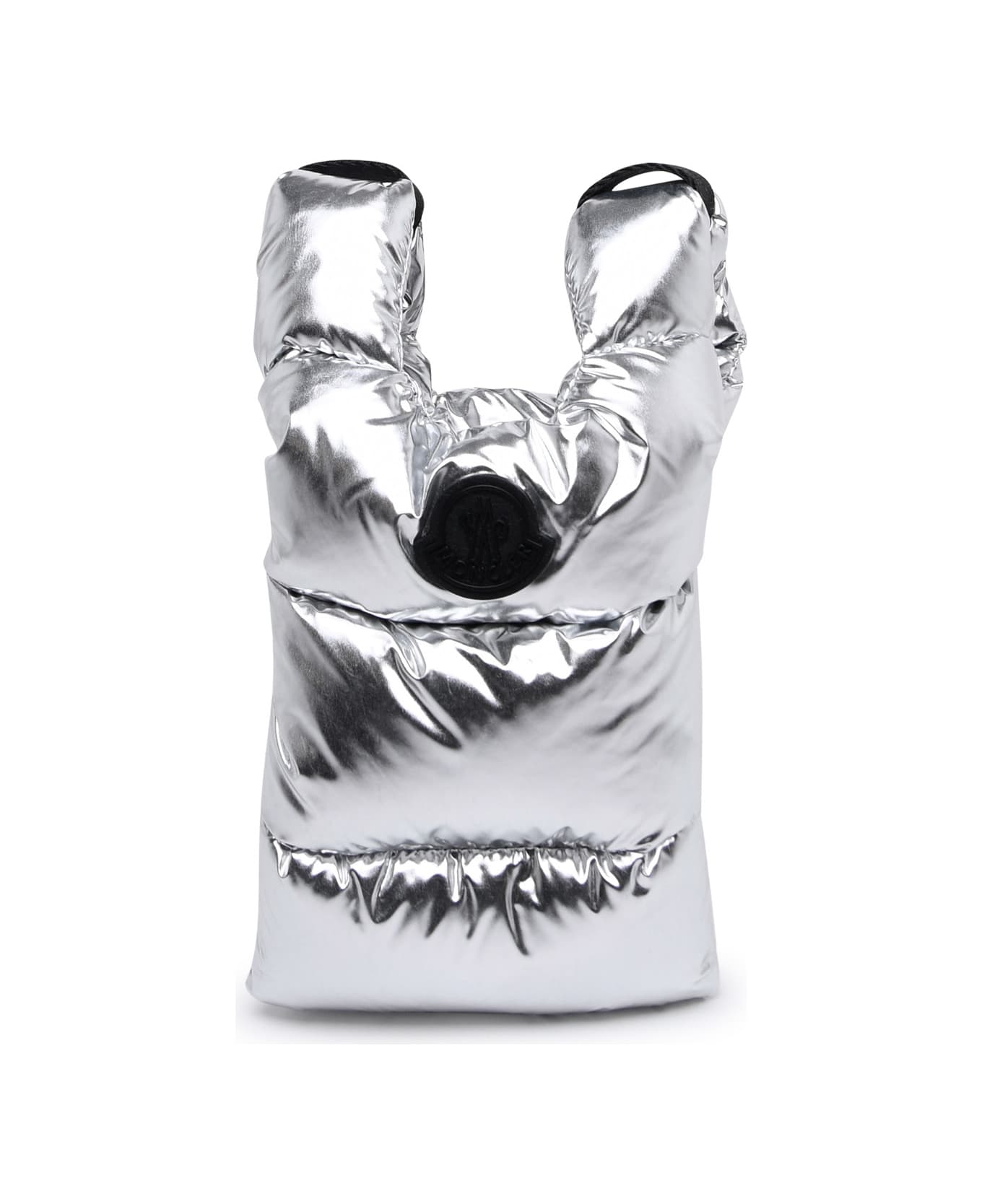 Down filling, boudin quilting, leather inserts, awith adjustable shoulder strap, front logo patch, two inner compartments \n13 x 16 x 8 cm Composition: 100% Nylon