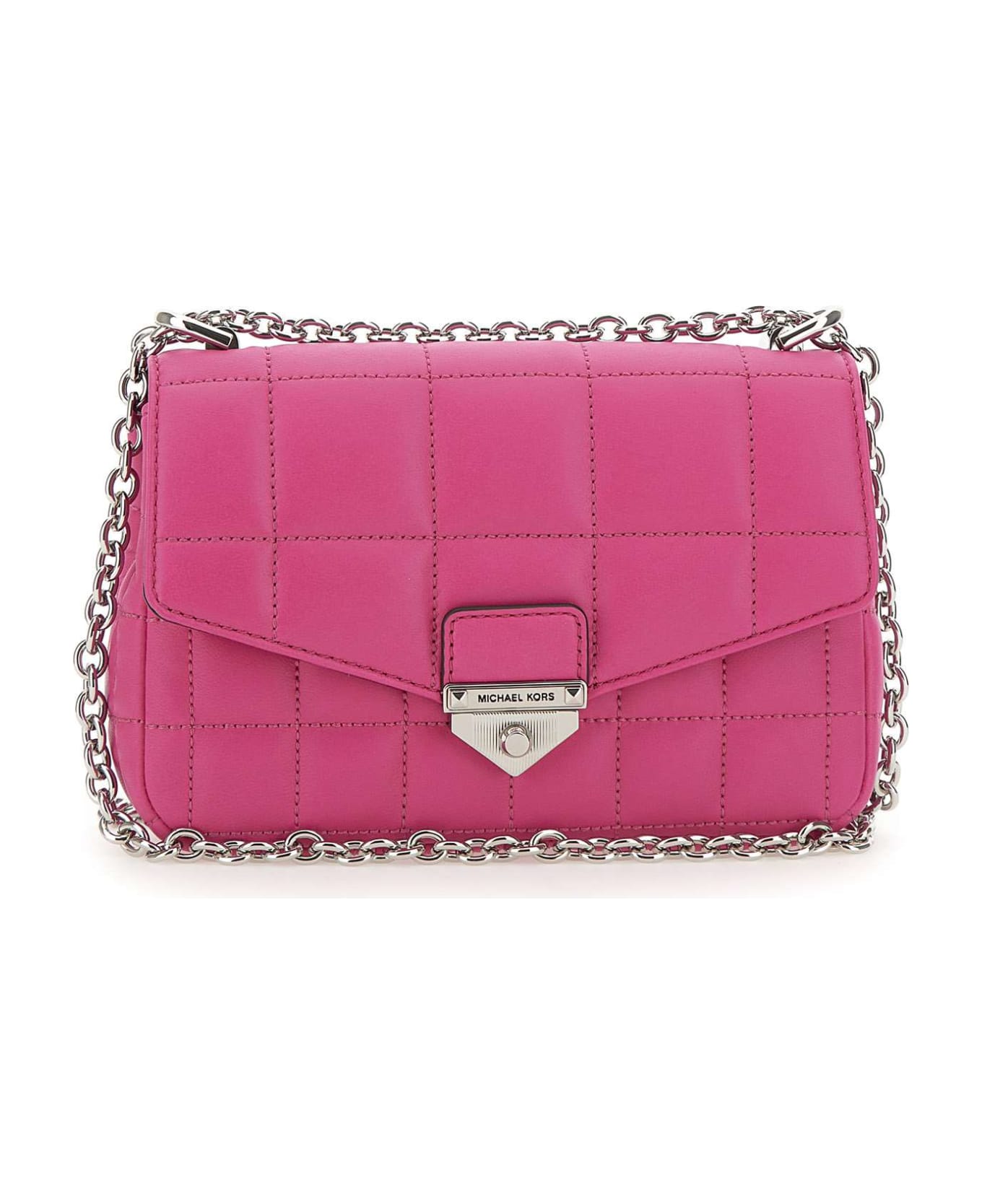 Micheal Micheal Kors "Sohosm" matelassé leather shoulder bag, fuchsia, closure with flap and logo snap button, metal shoulder strap with leather detail 90cm, internal compartment with zip, internal zip pocket, external slip pocket, silver hardware. Dimensions: height 13cm, length 20cm, depth 6cm.