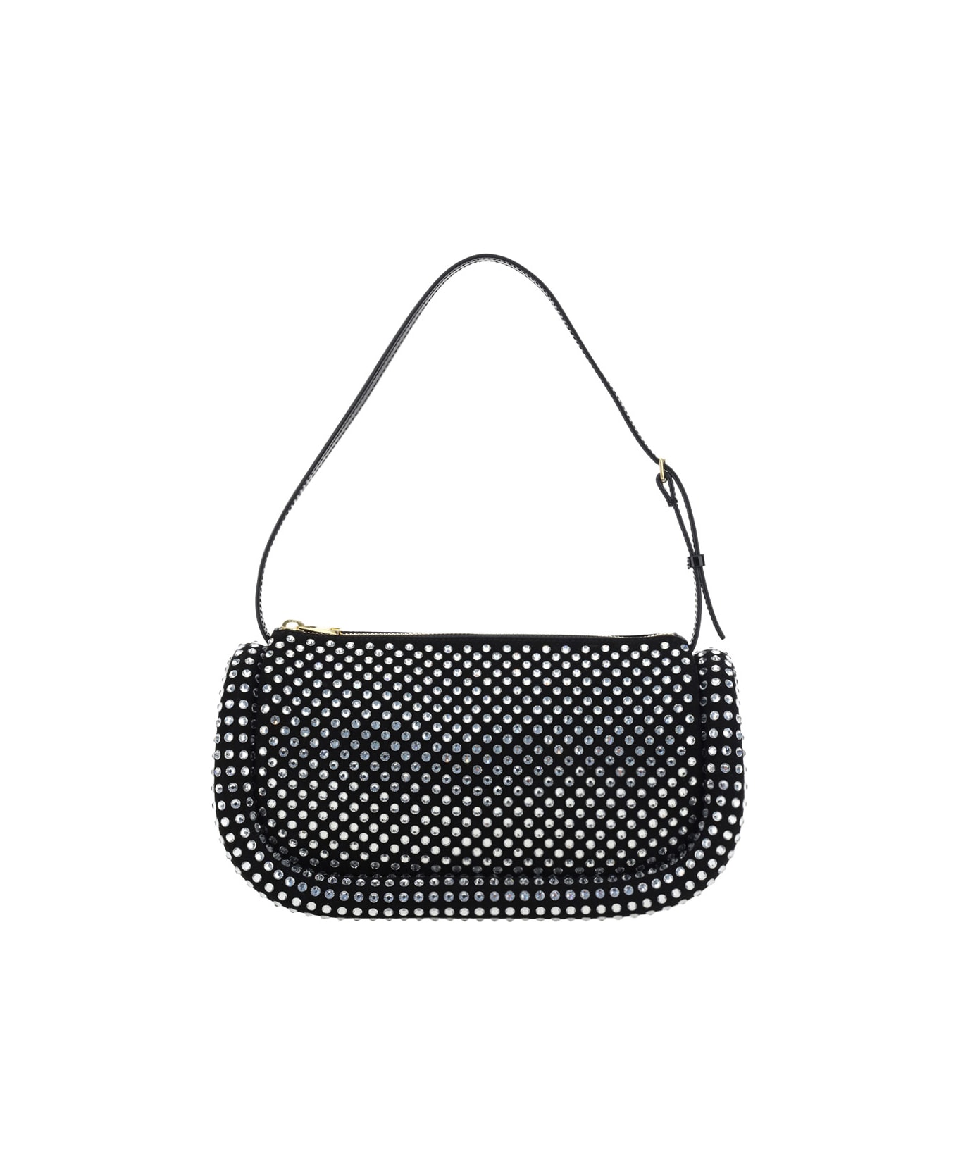 Calfskin the bumper shoulder bag by j. w. anderson, adjustable leather shoulder strap, tubular padding, contrasting brand signature press-stud at front, top zipper closure, interior welt pocket, design covered with all-over contrasting shiny crystals.