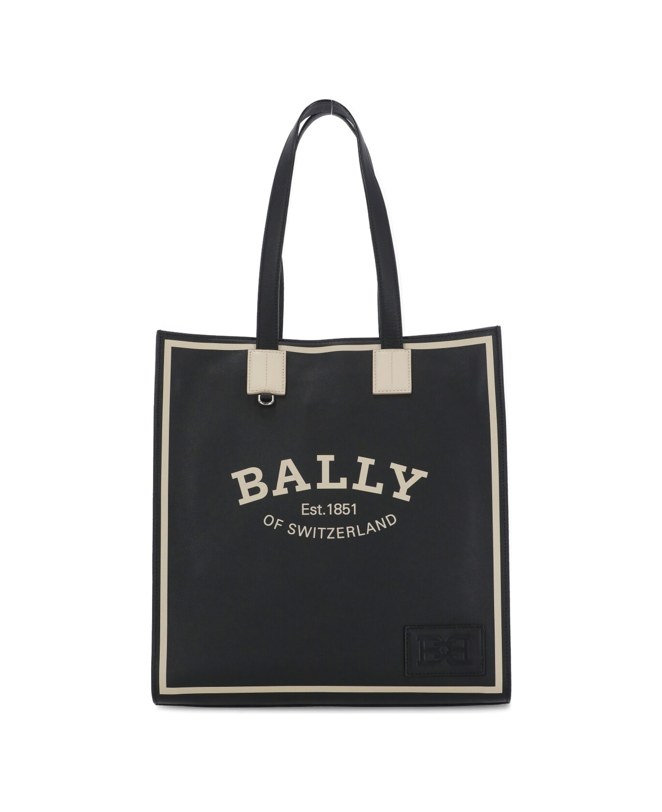 Crystalia Shopping Bag from Bally: - Black Bally pebble leather woman's shopping bag - Two handle - Front contrasting color printed logo - Front tone on tone B-Chain patch - One main compartment with zip fastening - One interior zip pocket - Two interior open pockets