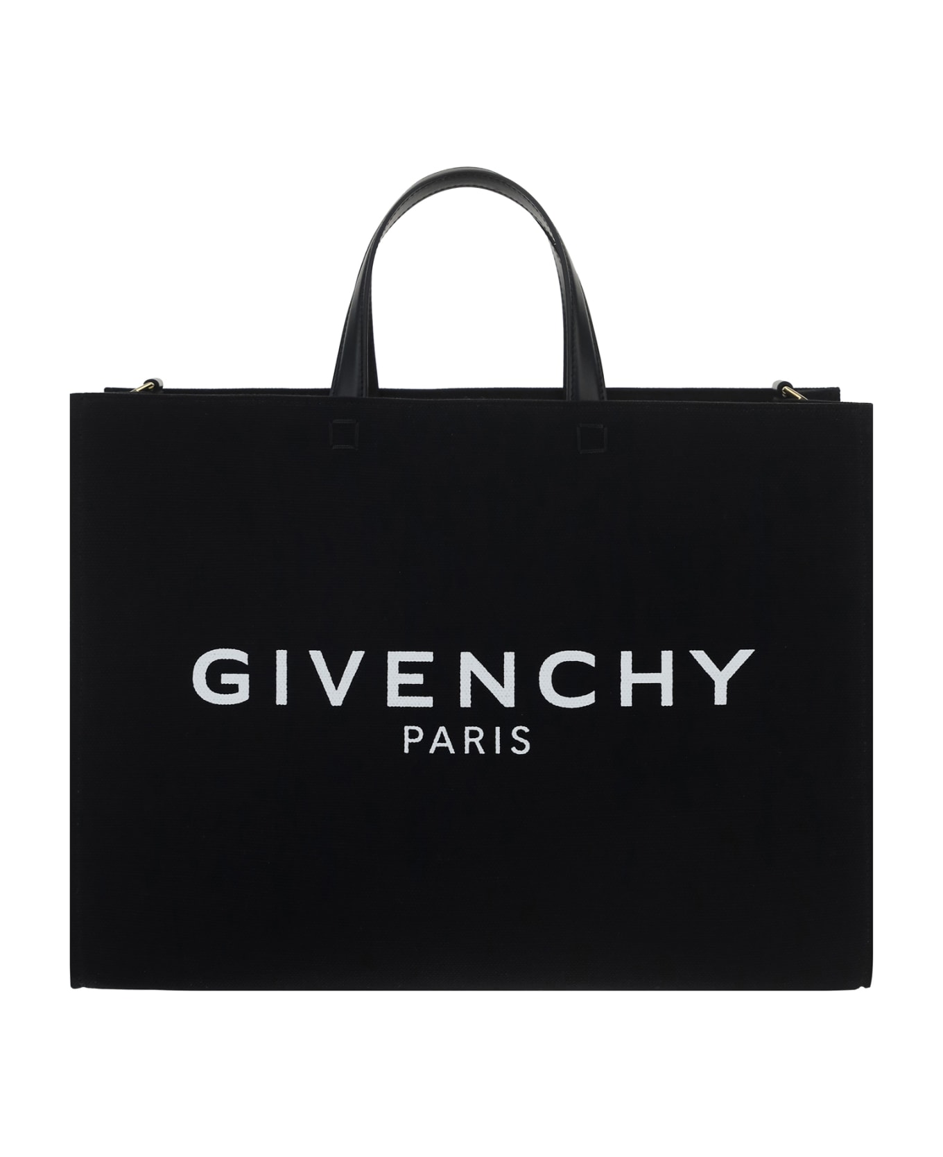 Cotton g-tote handbag by givenchy, contrasting print on the front with the brand's monogram, removable canvas jacquard shoulder strap, two semi-rigid leather handles, support feet on the base of the bag with the iconic 4g motif, internal welt pocket, metal details with silver hardware.