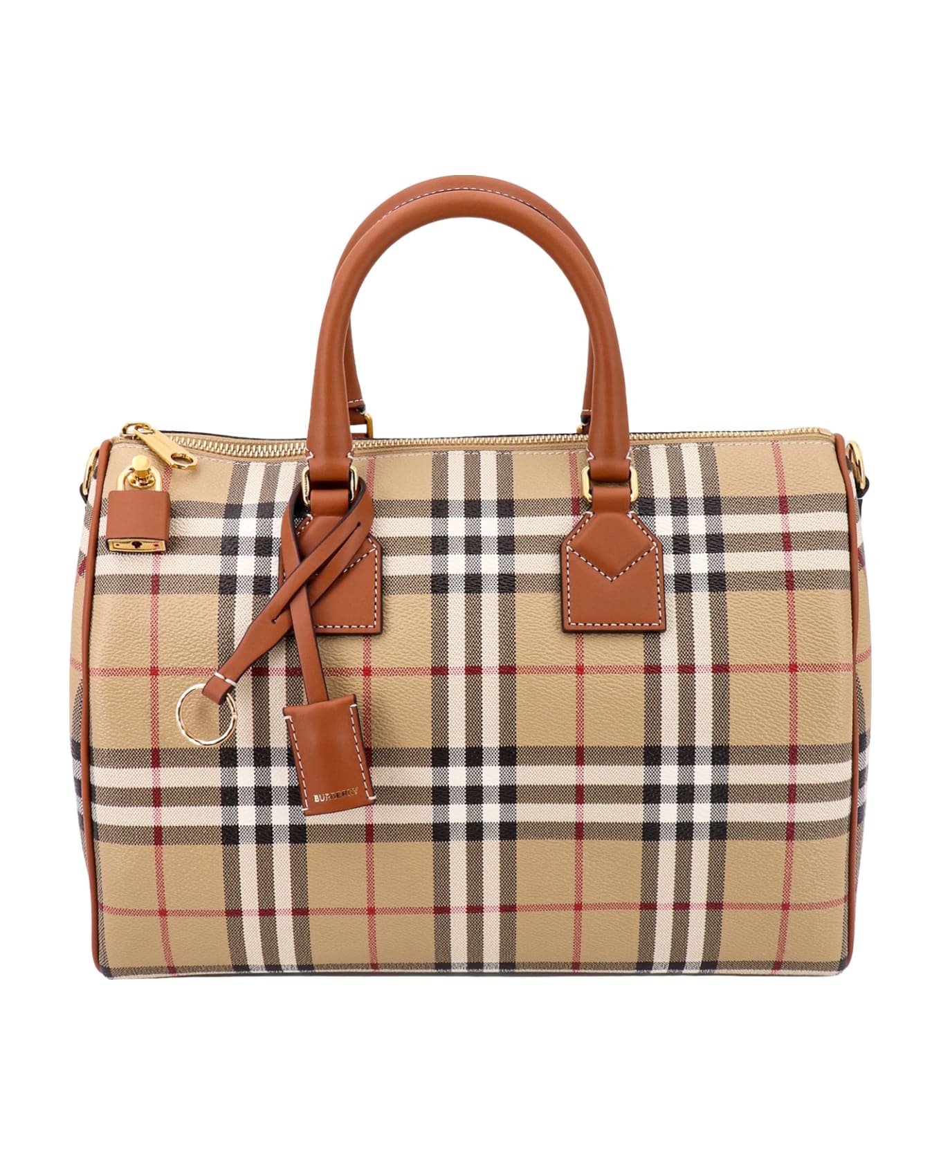 Coated canvas handbag with Burberry Check motif - Closure With Zip - Leather Handles And Removable And Adjustable Shoulder Strap - Detail With Padlock - Made In Italy - 54% Polyurethane 35% Cotton 11% Polyester