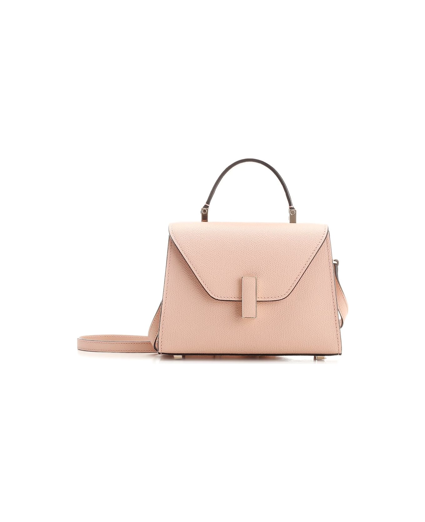 "Iside" micro top handle bag from Valextra in Millepunte leather, with flap, golden metal closure with leather insert, adjustable shoulder strap, protective feet, hand-painted edges, internal flat pocket.
