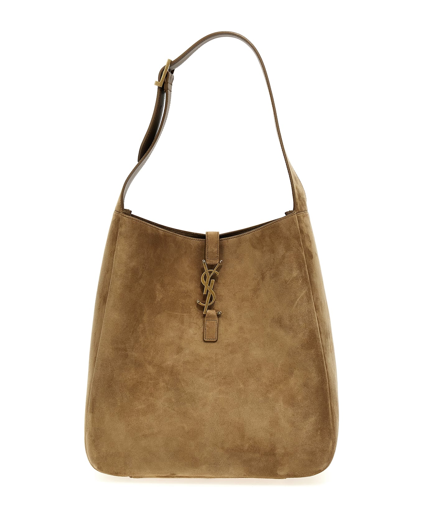 Large 'Le 5 À 7' suede shopping bag with Cassandre metal logo detail closure, adjustable handle.