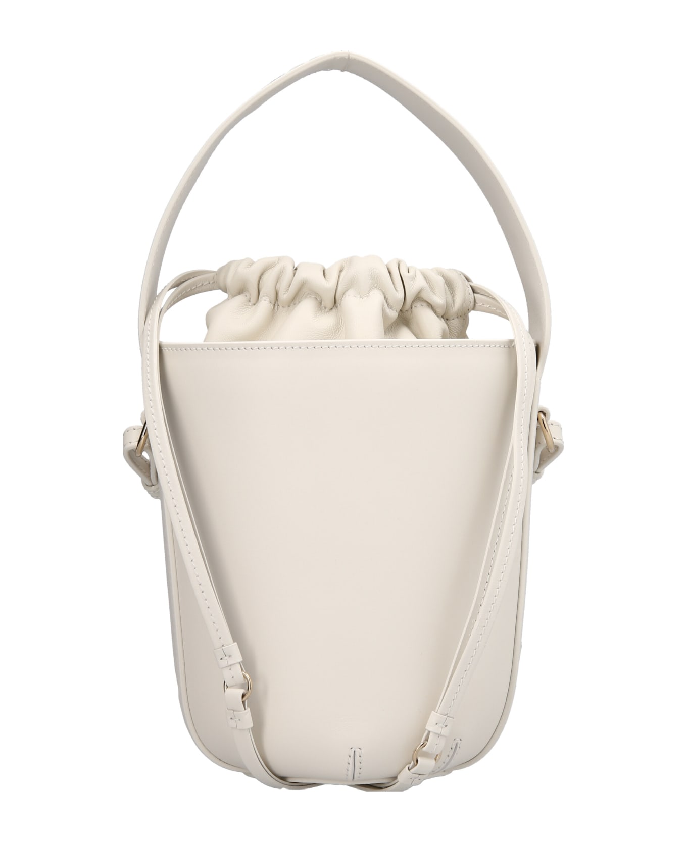 Leather bucket bag with a large top handle with logo embroidery, a drawstring closure and an adjustable, removable leather shoulder strap. Composition: 100% lamb leather