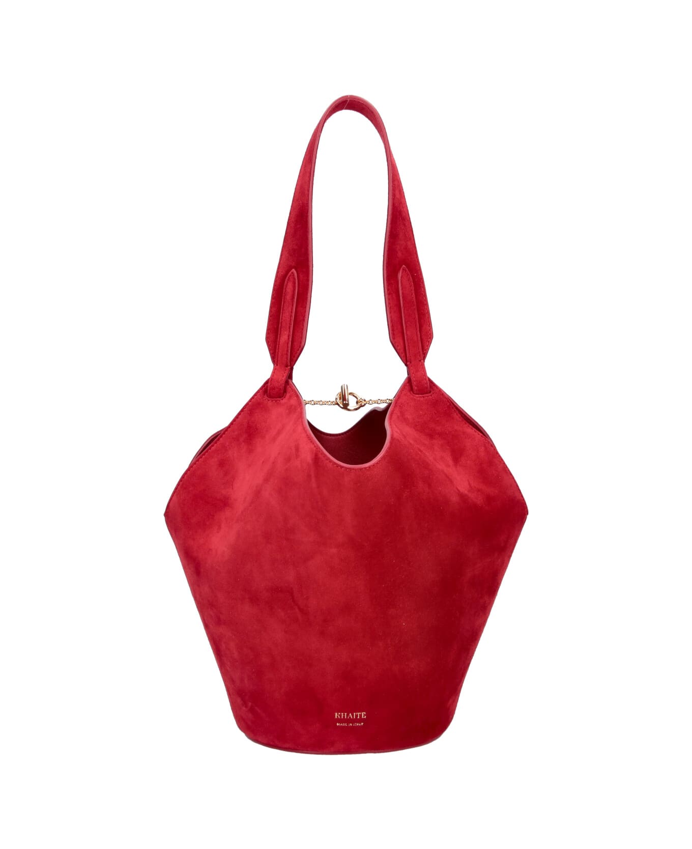 - Mini tote bag "Lotus" Khaite in red calf suede - one top handle - chain closure and golden metal hook - embossed golden logo on the front - one main internal compartment
