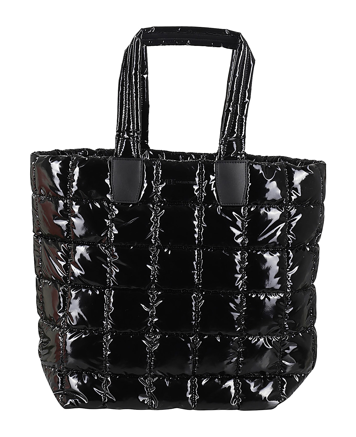 Porter Shopper - Vee Collective - Black color - Shiny quilted nylon fabric - Single compartment with inside pockets - Double top handles - Adjustable and removable shoulder strap - Top zipper closure - Size: 43 x 16 x 36 cm.
