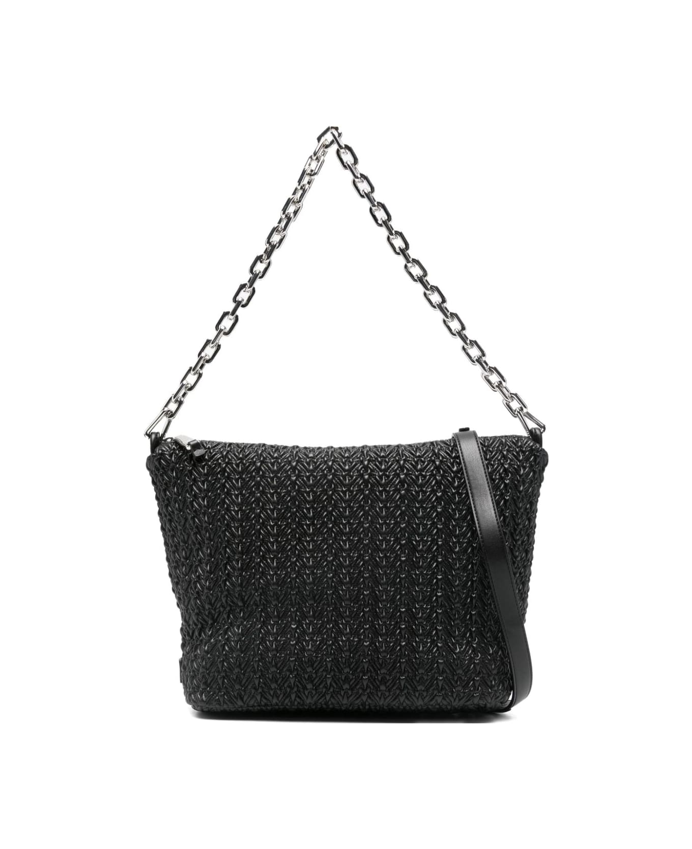 black woven texture chain strap zip fastening rectangular shape