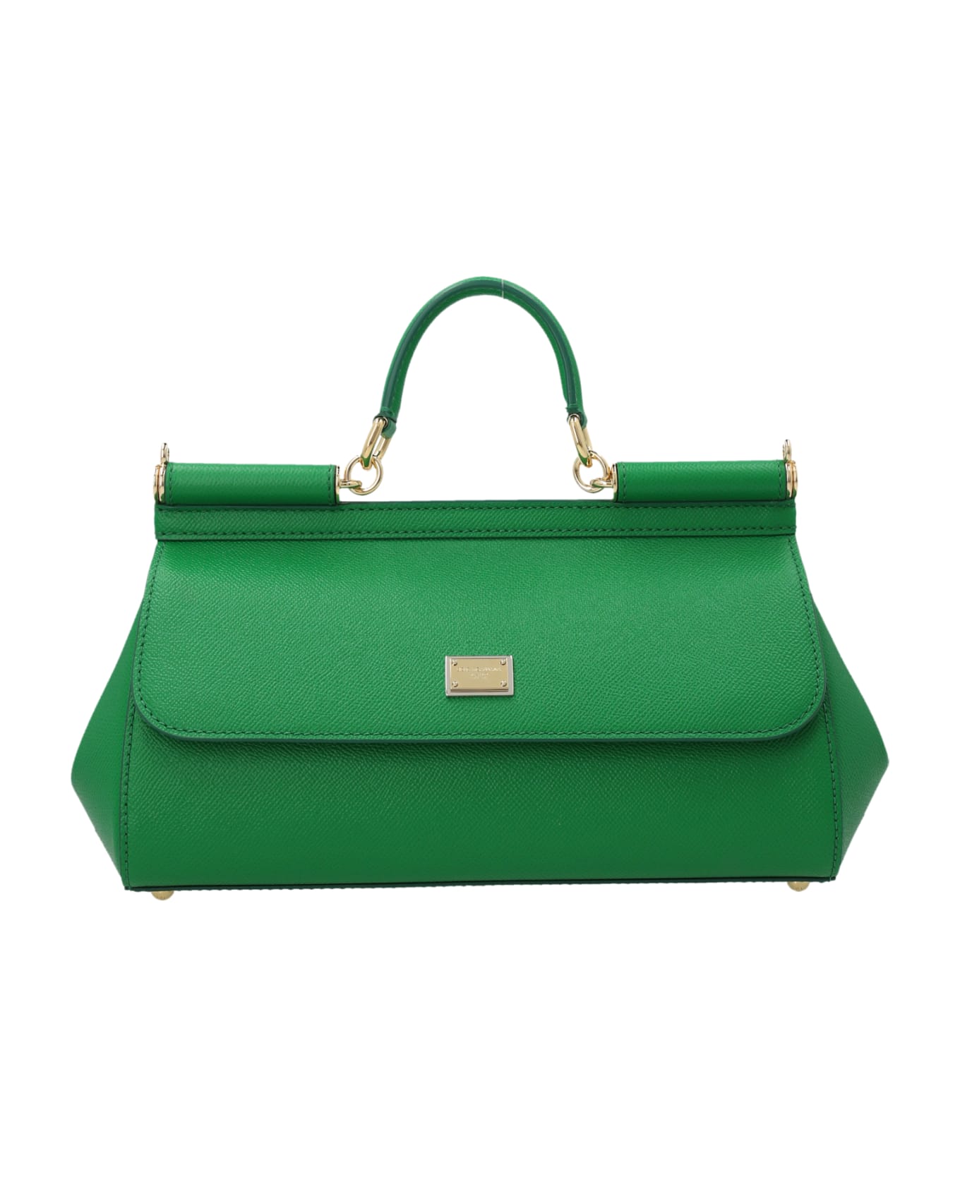Sicily' medium leather handbag with flap closure with metal logo application, top leather handle and awith adjustable and removable shoulder strap.