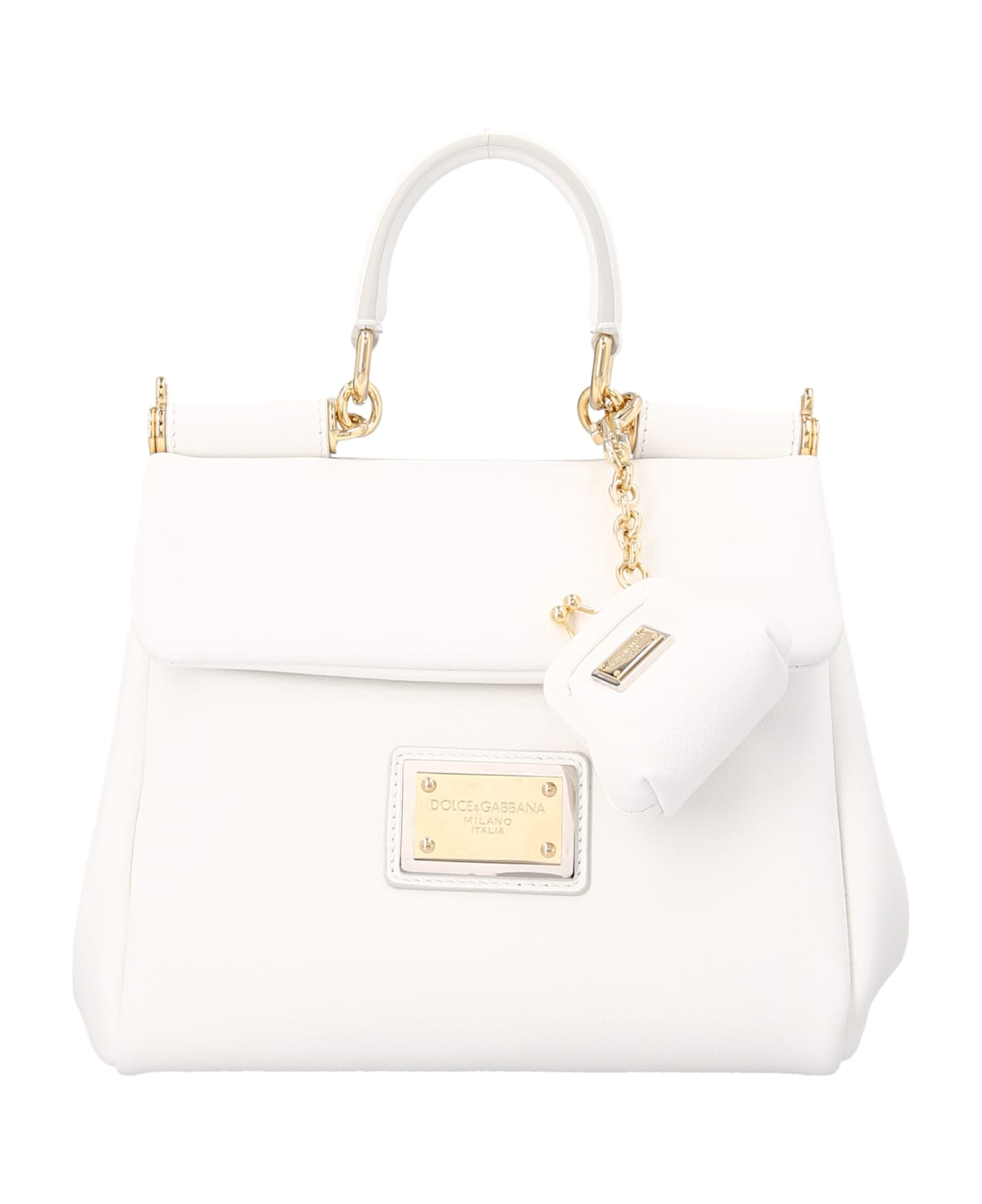 Sicily Soft' small calf leather handbag with front flap with concealed double magnet closure, flat back pocket with logo zip slider, top handle and awith adjustable and removable calf leather shoulder strap.