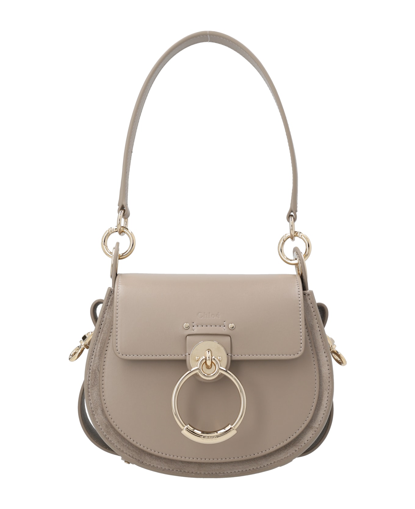 'Tess' leather crossbody bag with flap closure with metal ring detail, removable leather shoulder strap, top handle and a front embossed logo.