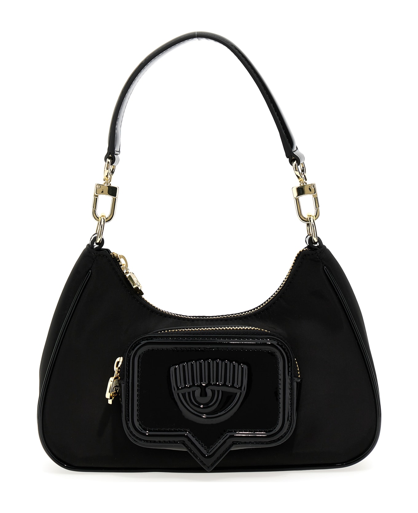 Vicky' nylon handbag with faux leather details, Eyelike pocket at the front, an faux leather handle with gold metal details. Composition: 100% polyester