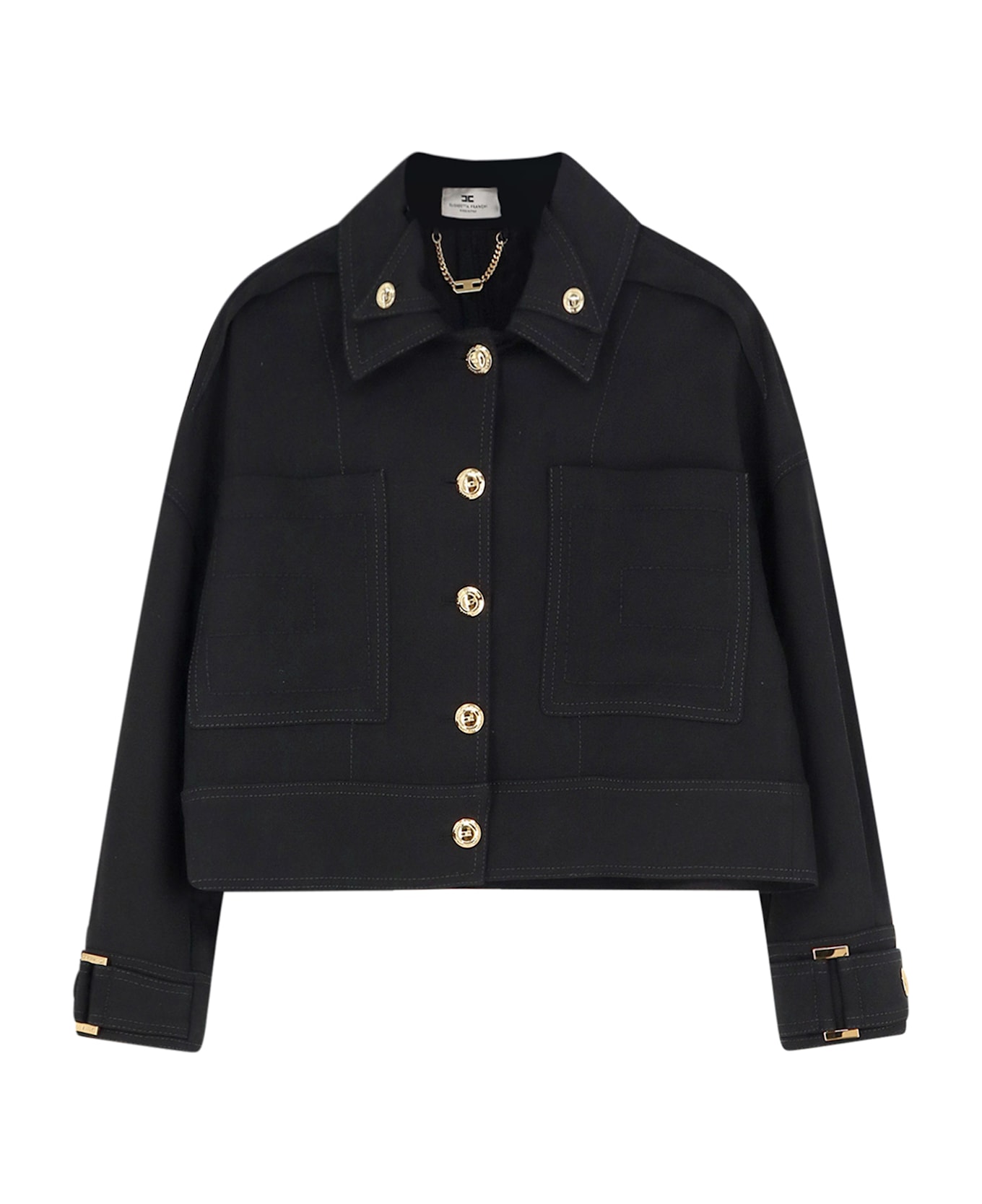 Closure with metal logo buttons Patch pockets on the front Monogram embroidery Long sleeves with cuffs, belt, buckle, and button Made in Italy 98% viscose, 2% elastane SKU: GB00561E2110