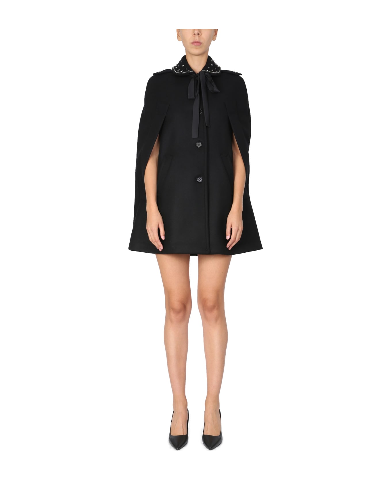 - Collar With Rhinestones- Epaulettes- Crepe De Chine Scarf- Regular Fit- 71% Virgin Wool, 22% Polyamide, 7% Cashmere- The Model Is 180 Cm Tall And Wears Size 40 It