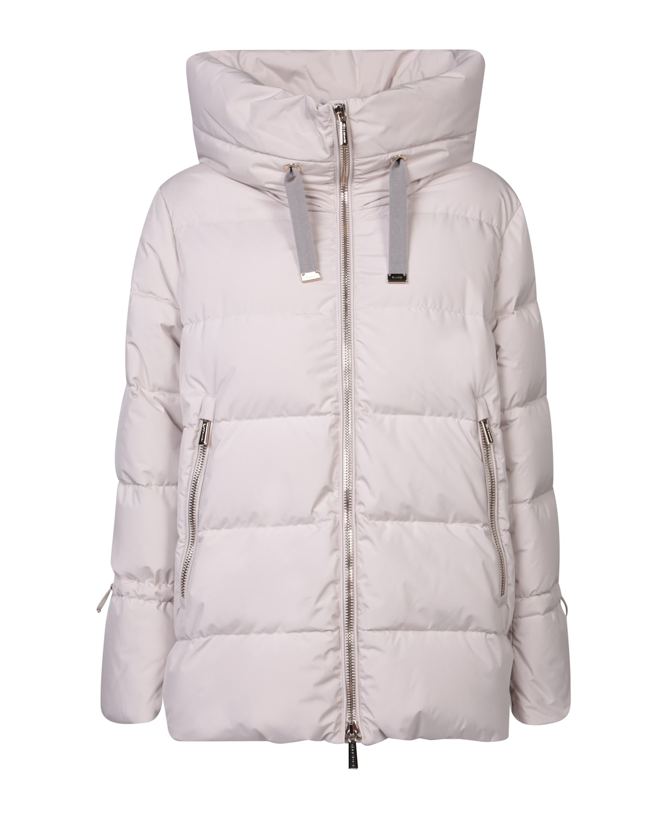 An unmistakable blend of luxury and functionality defines this ivory down jacket by Moorer. Featuring a large hood and premium metal finishes, it's ideal for the sophisticated winter wardrobe.