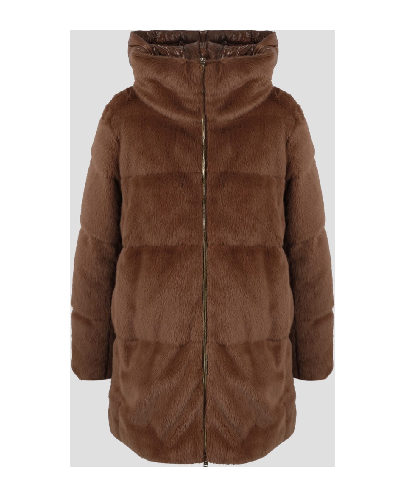 Quilted eco-fur coat by Herno, with nylon hood. - FW22 - Detachable drawstring hood - Zip fastening - Sides pockets - Made in Romania - 100% Polyester