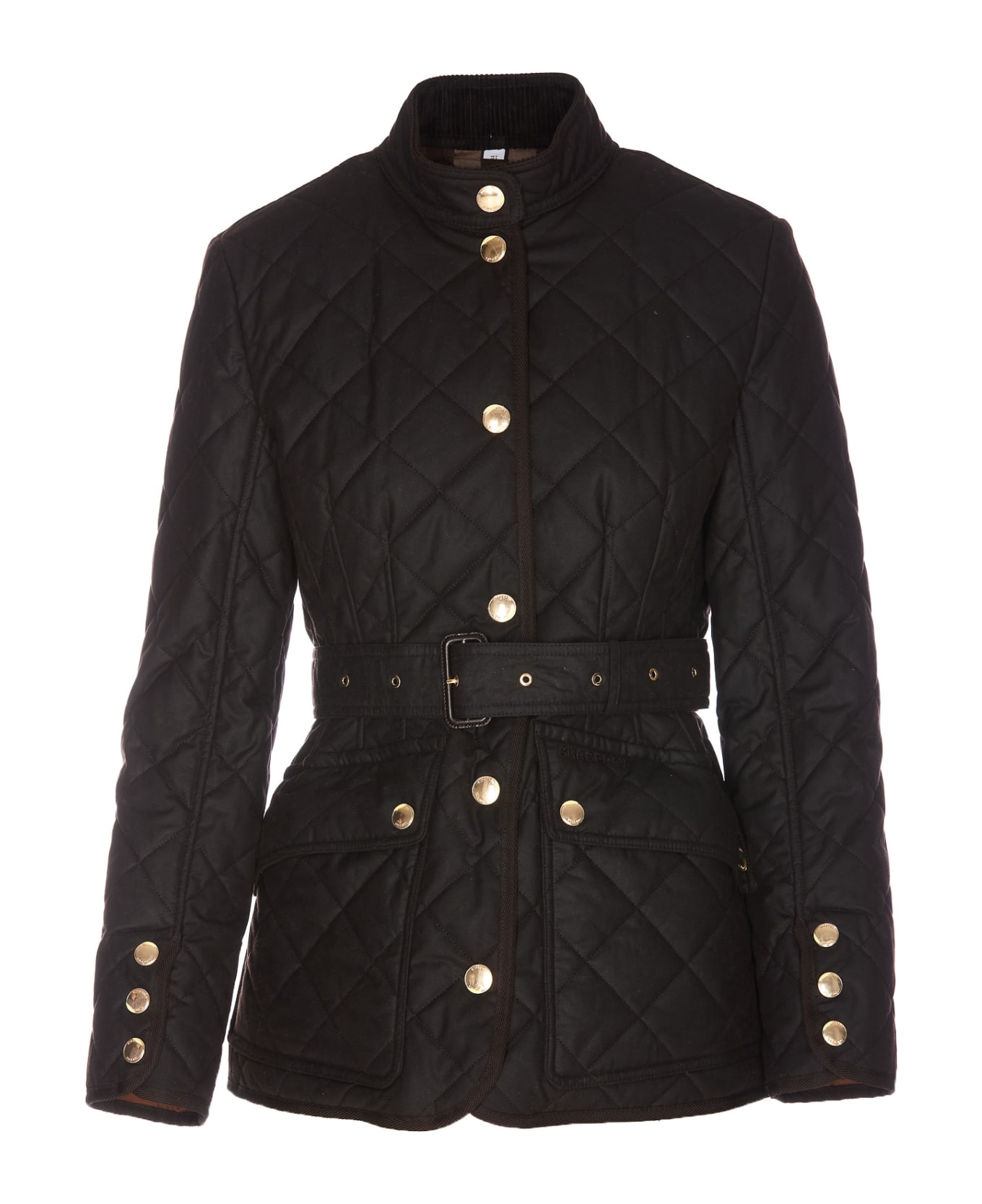 Burberry dark brown jacket, frontal golden buttons closure, quilted effect, frontal pockets with golden buttons closure, golden buttons details on cuffs, embroidered logo on the front Composition: 100% Cotton
