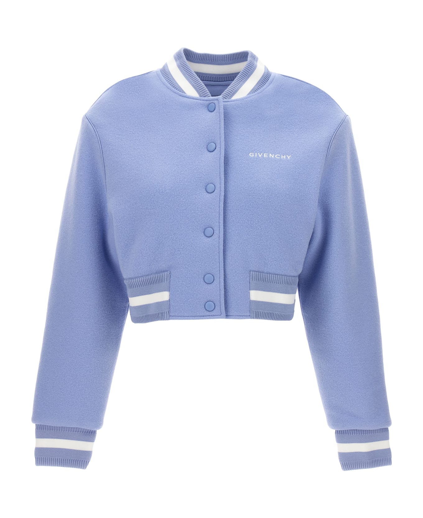 Varsity' wool cloth bomber jacket with button closure, logo embroidery at the front and back, long cuffed sleeves and a cropped style.