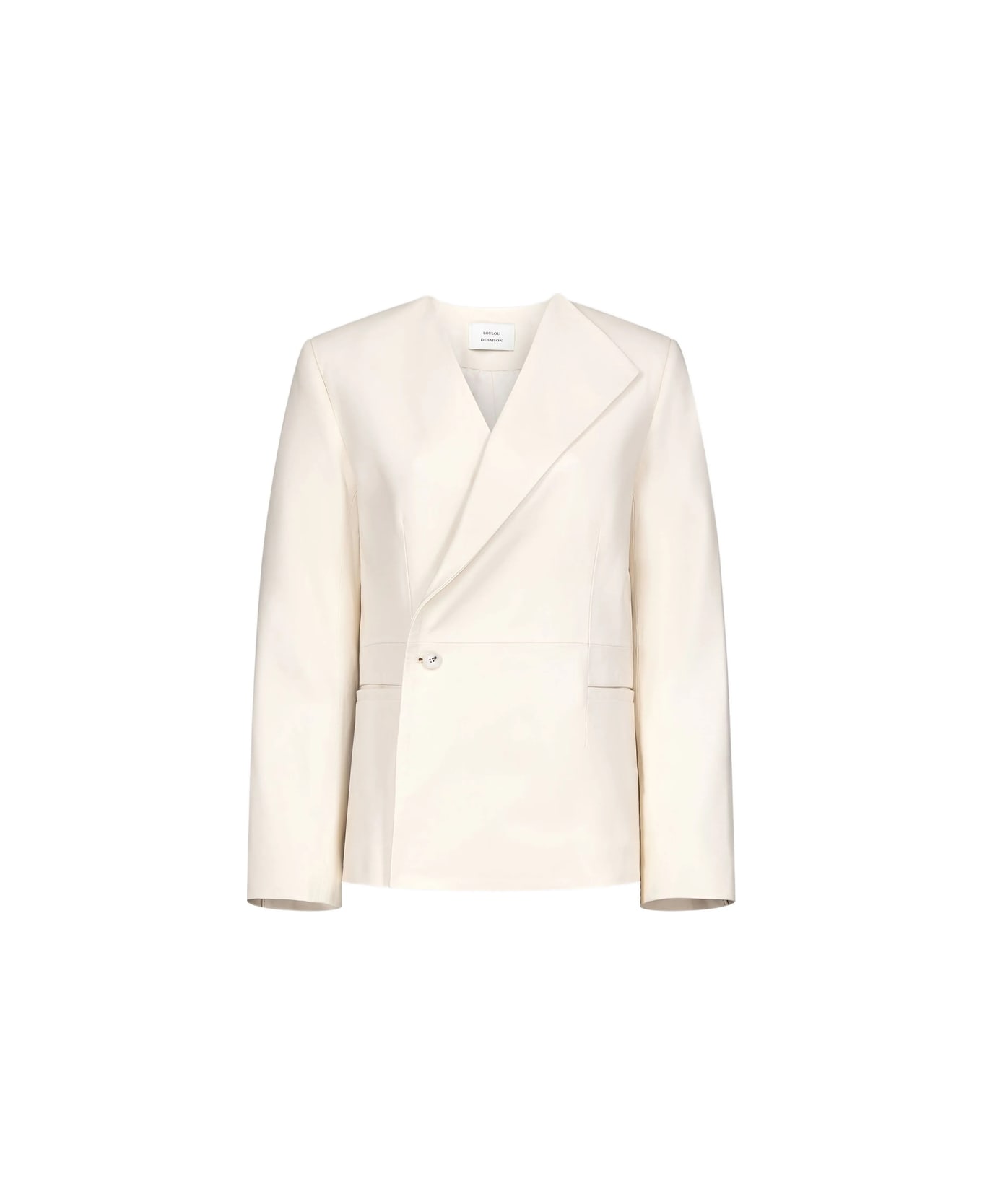 ivory asymmetrical lapel single button fastening welt pockets back vent