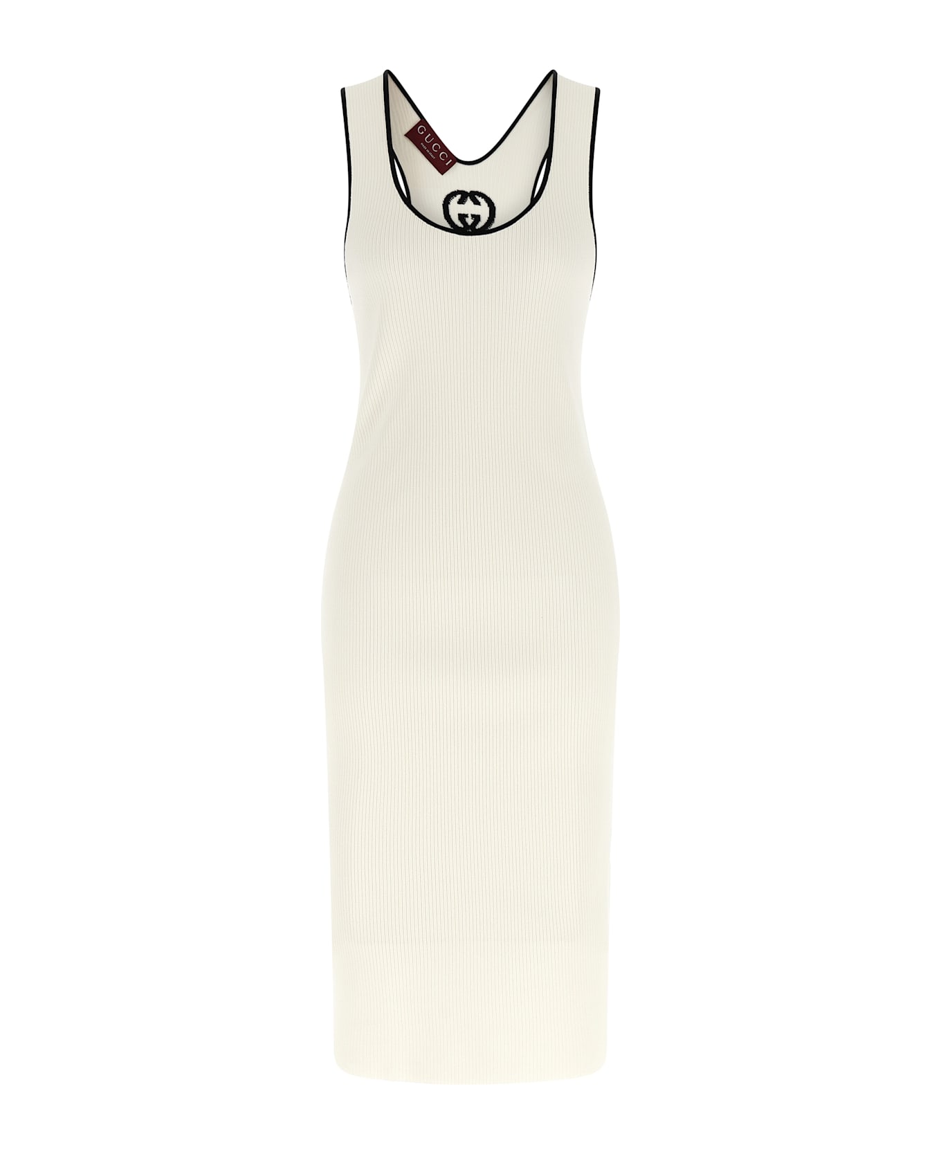 Sleeveless dress in stretch viscose with 'Doppia G' intarsia at the back, tank top model with contrasting piping, and wide round neckline.